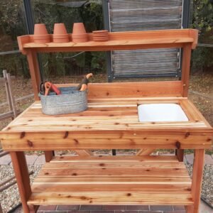 DIY Potting Bench with Sink & Shelves