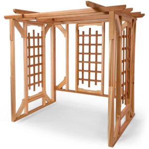 Elevate your garden’s charm with the Cedar Pagoda Arbor, a handcrafted showpiece built from sustainably sourced Western Red Cedar. Designed