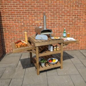 Elevate your outdoor dining experience with the Pressure Treated Pizza Oven/BBQ Table. This versatile and adaptable product makes outdoor cooking