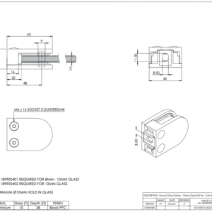 Glass Clamp Flat Back Round Front To Suit 8 to 12mm Glass – Grade 304 (interior only)