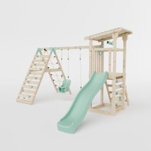 The Willow Way Climbing Frame with Slide & Single Baby Swing is a beautifully designed outdoor playset that combines imaginative