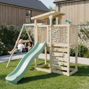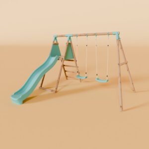 Transform your garden into a fun-filled outdoor play area with our Double Wooden Swing Set with Slide. This all-in-one adventure