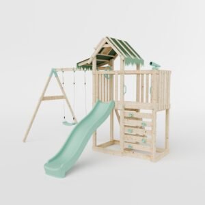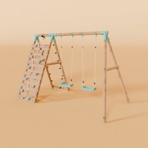 Double Wooden Swing Set with Climbing Wall and Slide – Stagwood I