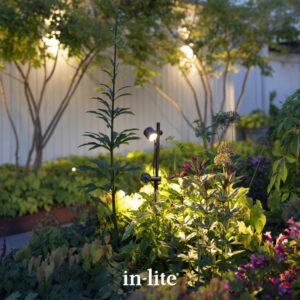 The focused light from the SCOPE LED outdoor spotlight highlights special places in the yard such as trees, shrubs, statues