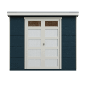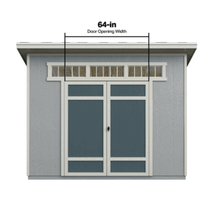 The Silverlake Shed combines modern elegance with functional storage. It features residential-grade French doors with a wide 72-inch opening, providing