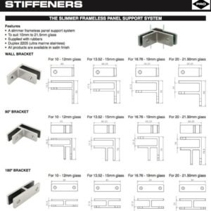 This 180 Degree Glass Stiffener is made of Duplex 2205 stainless steel, ideal for modern frameless glass applications. It is