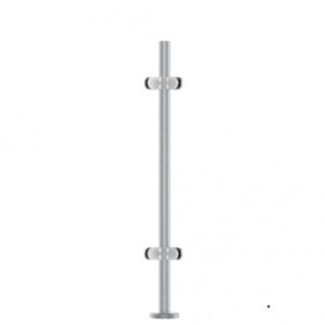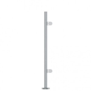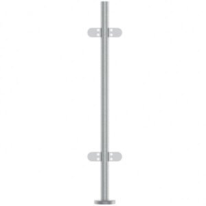 Concrete-in satin finish stainless steel 316 pre-assembled round post. Complete with glass clamps. Top fitting not included. SPECIFICATIONS Diameter: 42.4mmmm