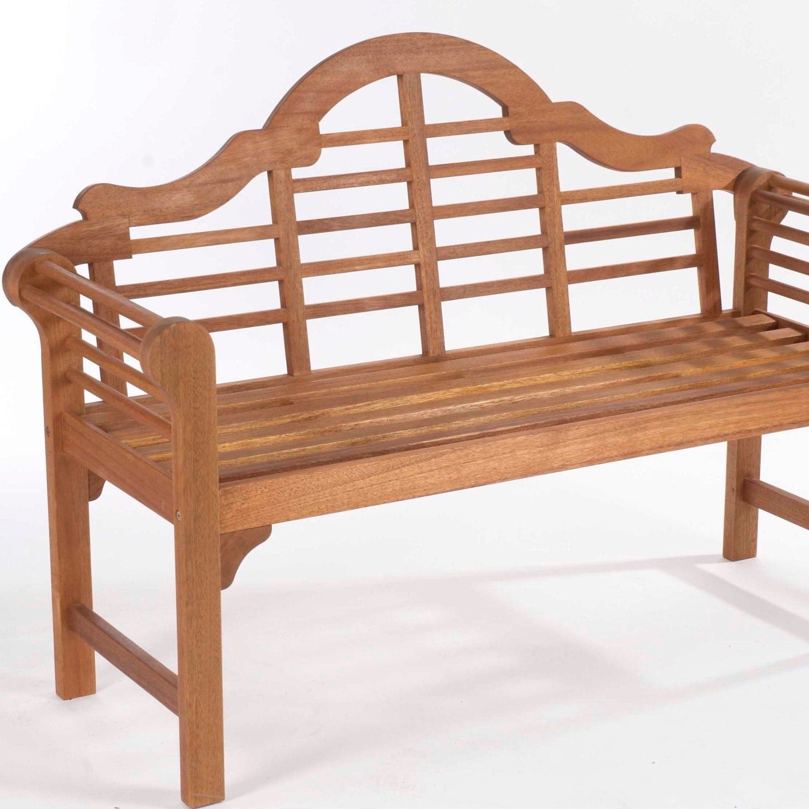 High-end quality solid acacia bench, with its rolling , scroll-shaped arms and oiled in either a natural, chestnut or white finish, they are a truly gorgeous product and will really light up your outdoor space.