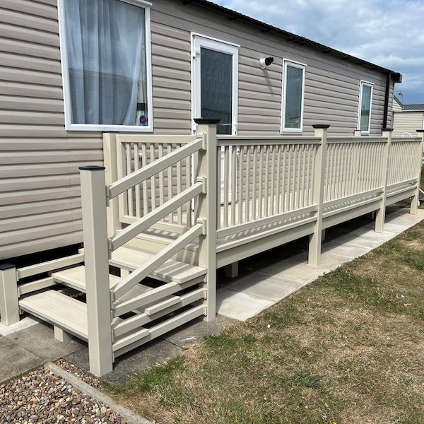 If you decide against the ranch skirt option, your 24’ x 3’ 10” walkway decking kit will be finished with a single fascia board. However, we also have a full selection of caravan skirting kits that offers further stunning options to finish your walkway and steps.