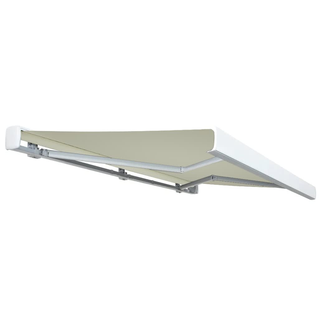 Full Cassette Electric (Motorised) Awning, full cassette design ensures it is clean and dry when opened. 350cm width X 250cm max projection, cream.