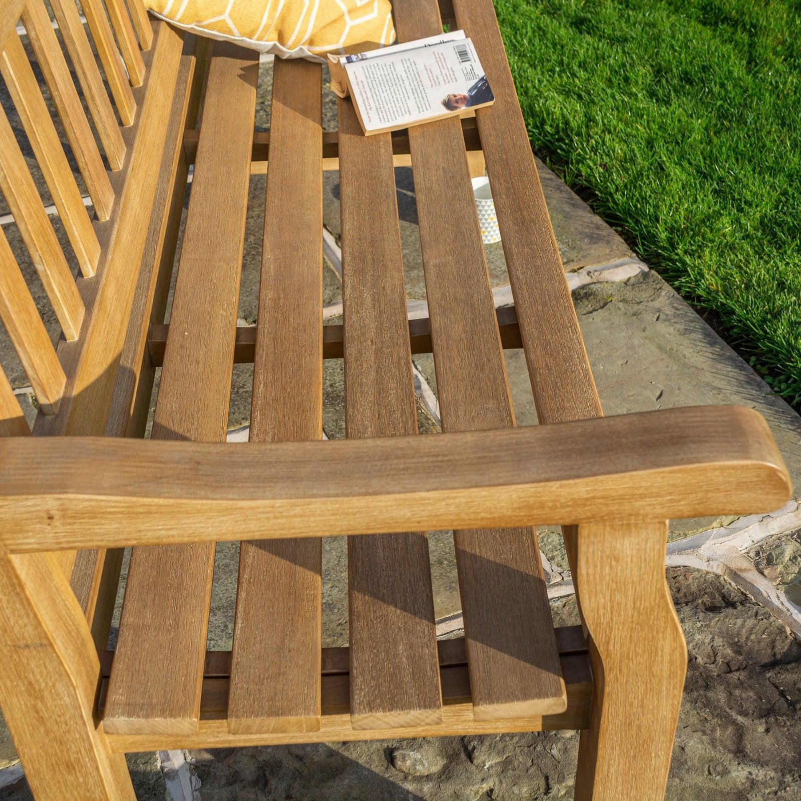 High-end quality solid acacia hardwood bench, you cannot beat the resilience and long-lasting quality of a proper acacia product, this bench is no exception. Gorgeous looking, smooth and tough, this beautiful bench will brighten up any outdoor space for a very long time. With its beautiful waxy looking washed finish it is a beautiful product.