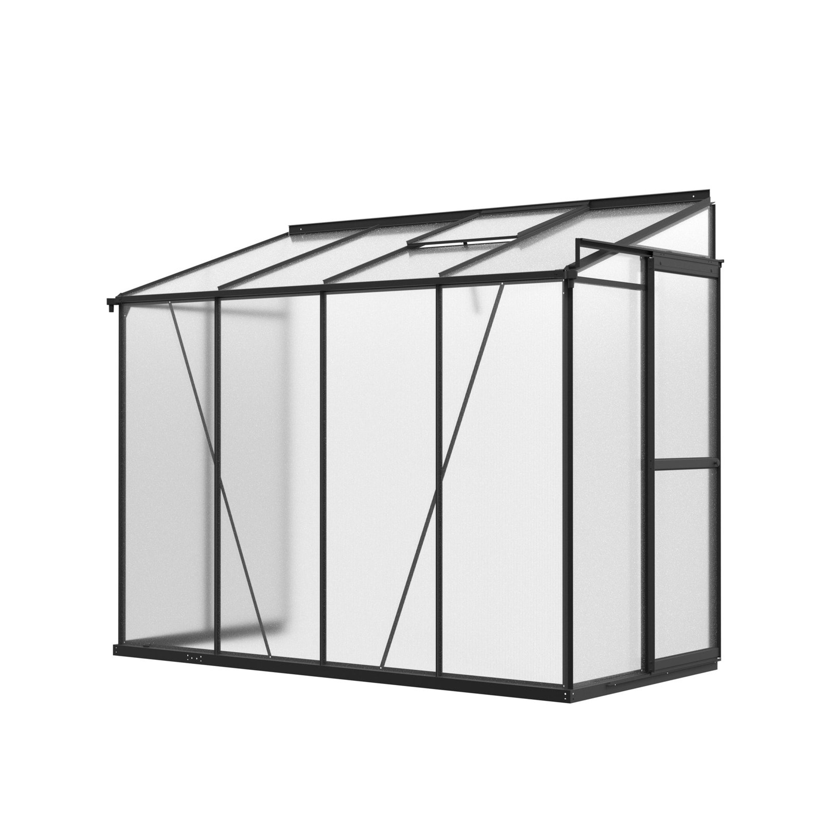 Constructed with a rust-proof aluminium frame and high-strength polycarbonate panels, this lean-to greenhouse is built to last. The shatterproof polycarbonate glazing allows excellent sunlight penetration while filtering harmful UV rays, helping your plants thrive in a stable, controlled environment. Unlike traditional glass, the flexible polycarbonate walls are impact-resistant, lightweight, and low-maintenance—ideal for busy households.