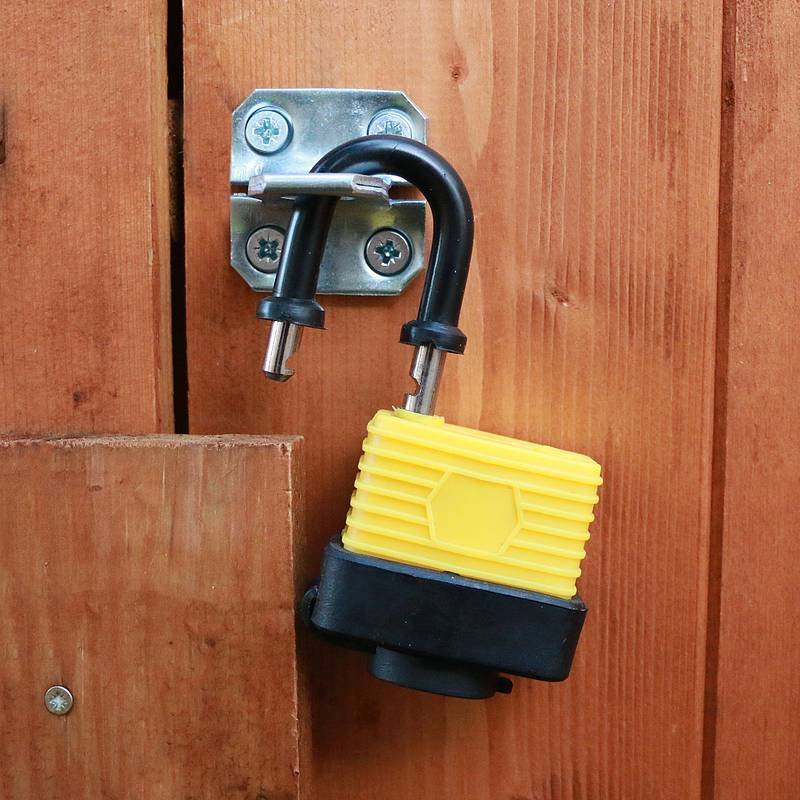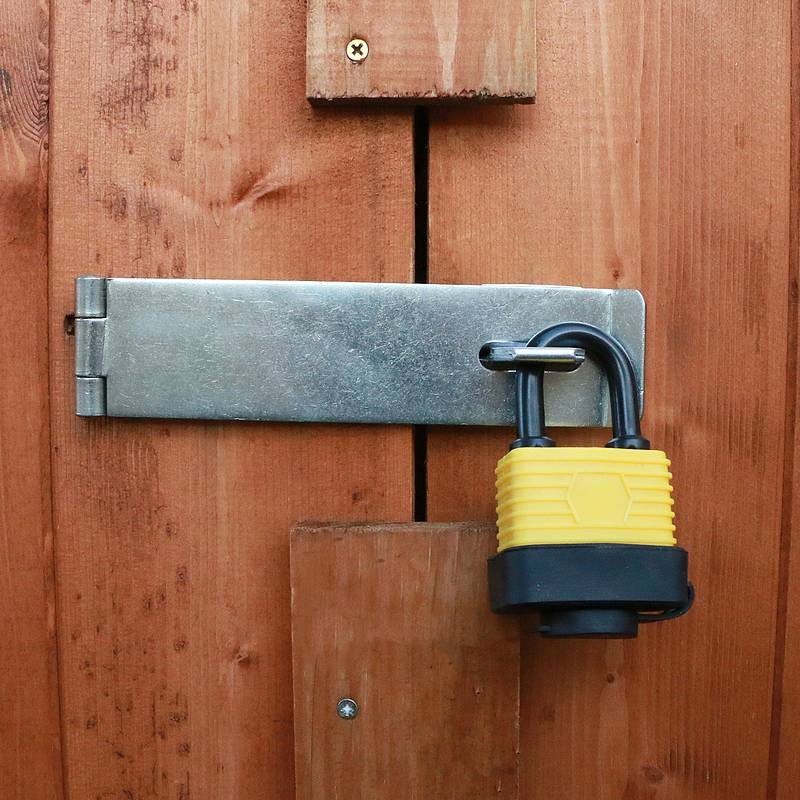 Secure your shed and protect your valuable tools and equipment with this hasp, staple and padlock from Waltons. The tamper proof hasp and staple fix quickly to your shed door and are made from protected, hardended steel that has been chrome plated for enhanced durability. Combining with a sturdy padlock that features a weatherproof thermoplastic jacket, brass cylinder and keyhole cover they give steadfast protection to any garden building.