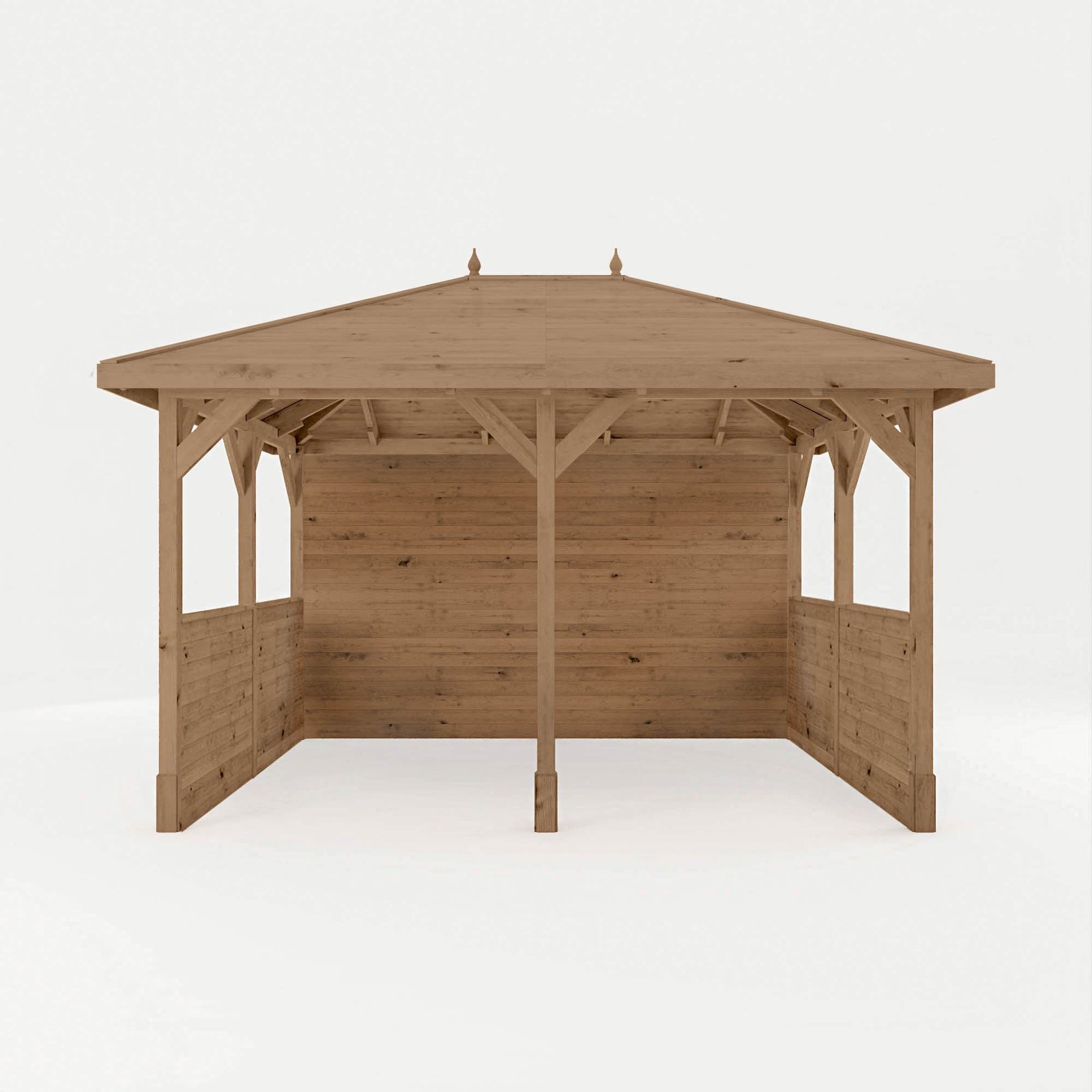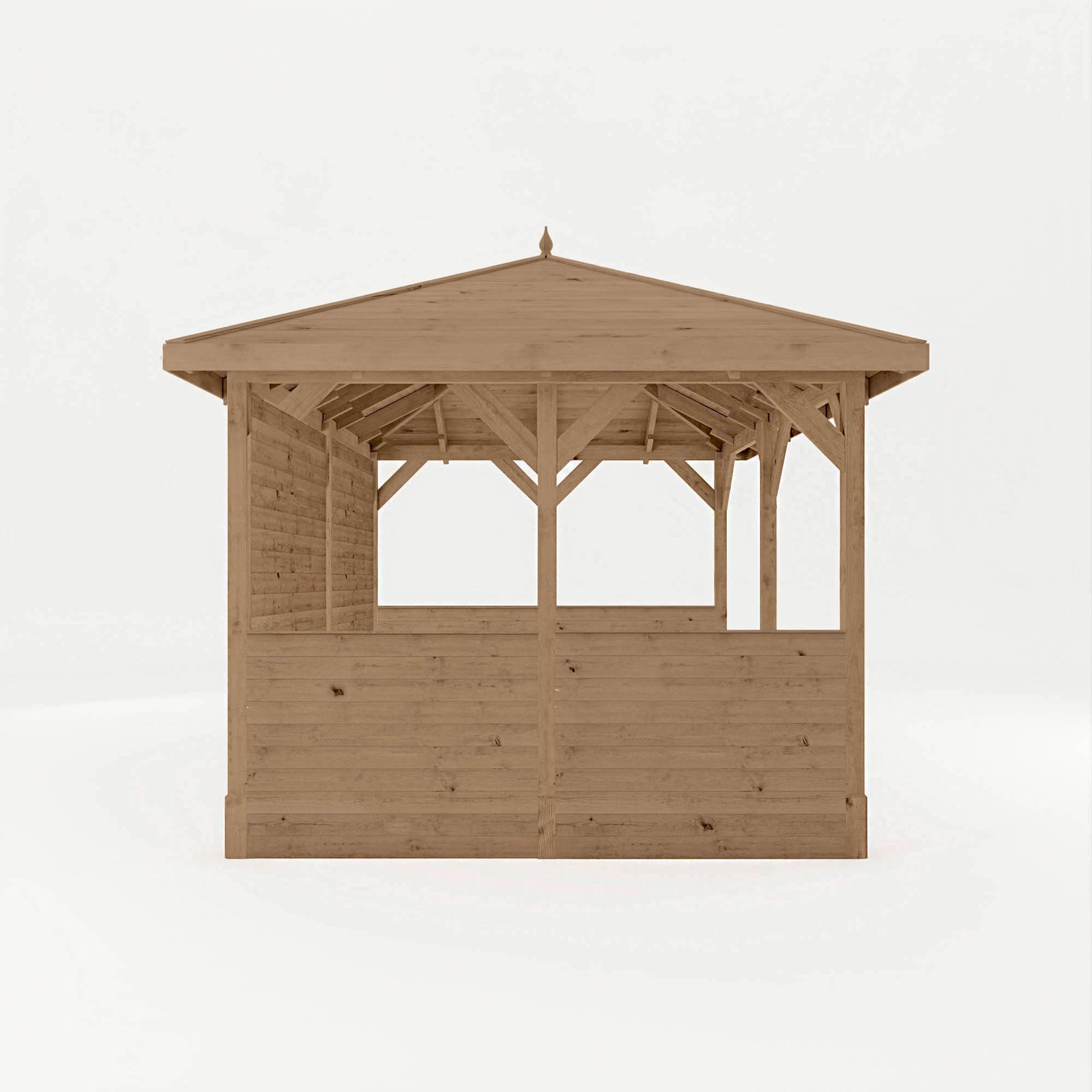 The Waltons 4m x 3m Gazebo with Full and Half Panels provides the perfect sheltered space to relax with family and friends. Whether you’re looking for an outdoor dining area, a cover for your hot tub, or simply a sheltered space to relax, this gazebo can be adapted to suit you! The tongue & groove roof protects against the elements, creating a strong structure to be enjoyed for years to come. Plus, this Gazebo is also supplied with 2x full-height boarded panels and 4x half height boarded panels, offering the ultimate sheltered outdoor entertaining space.