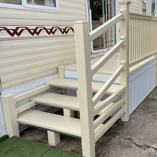 There are several options you can select from to tailor this kit to your caravan and desired style. Choose from a selection of decking and handrail colours, which are subject to stock.