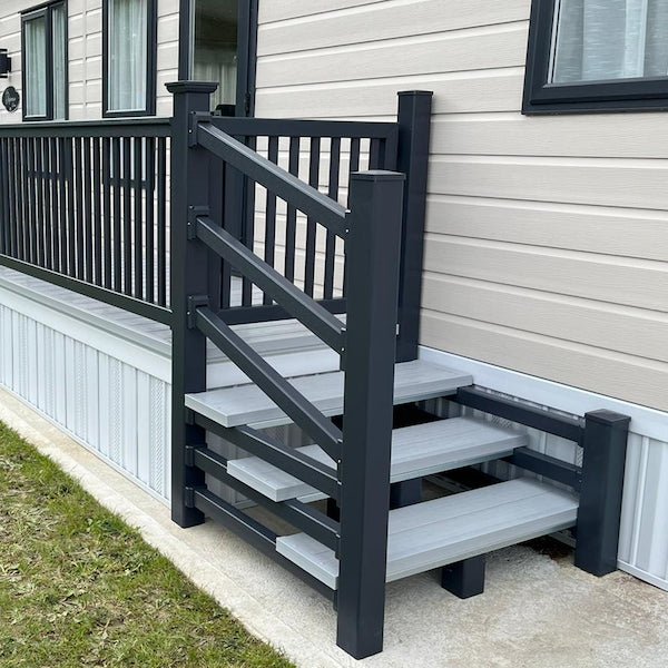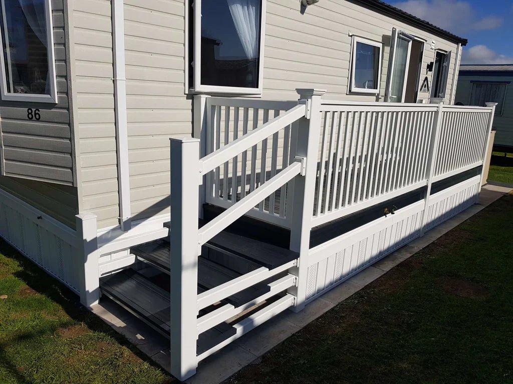 This superior self-build decking kit from Deck Supermarket will allow you to create a stunning 6′ x 3′ 3” entry platform – with the option of steps and a gate too. Entry platforms are fantastic way to enhance your caravan, serving as both a practical addition and an aesthetic feature.
