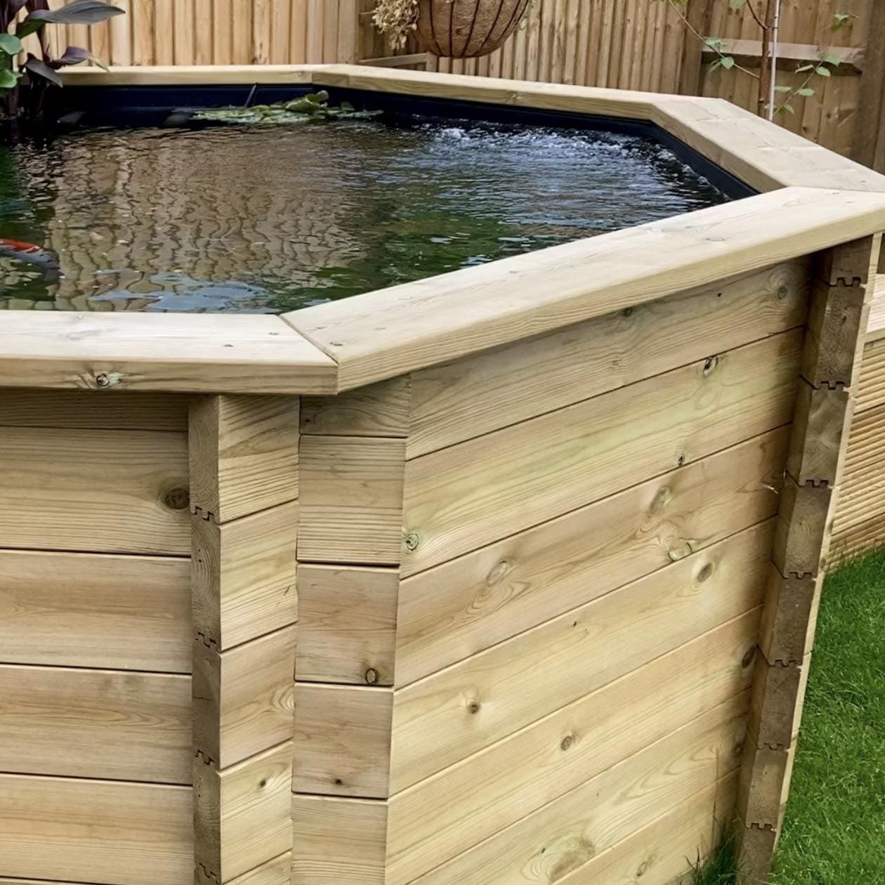 6ft (1.82M), 286 Gallon Octagonal Raised, Stand-alone Wooden Fish Pond, 27mm thick, 697mm high, 1305 litres.