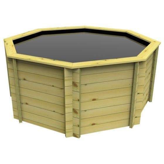 8ft (2.44M), 945 Gallon Octagonal Raised, Stand-alone Wooden Koi Pond, 27mm thick, 1099mm high, 4297 litres.