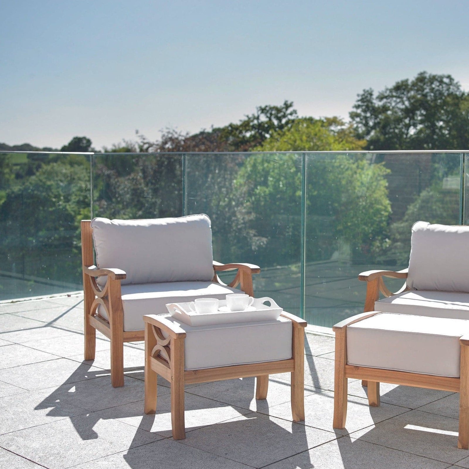 The heavy-duty, 150mm over-filled polyester cushions are shower resistant but should be put under cover when not in use to ensure they stay clean and fresh, the covers are removable for cleaning if required.