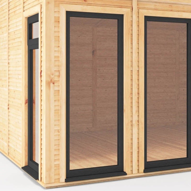Add an additional full length UPVC modular window in anthracite finish to your new garden building. Its modular design means it can be located in any position on the building. Buying this would replace one of the plain panels. It is 14mm thick argon filled double glazed unit.