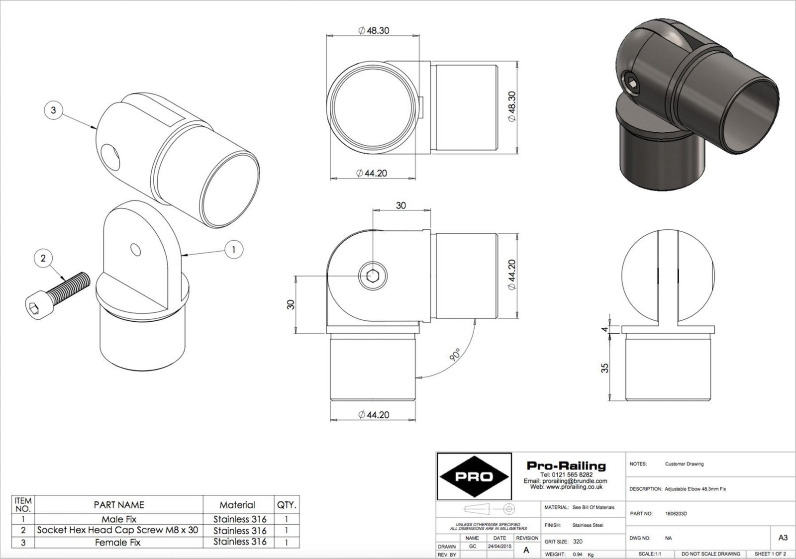 For use with full tube 48.3mm Handrail. Ideal for the transition upwards or downwards of a handrail used for stairs etc. where it is adjustable for different angles.