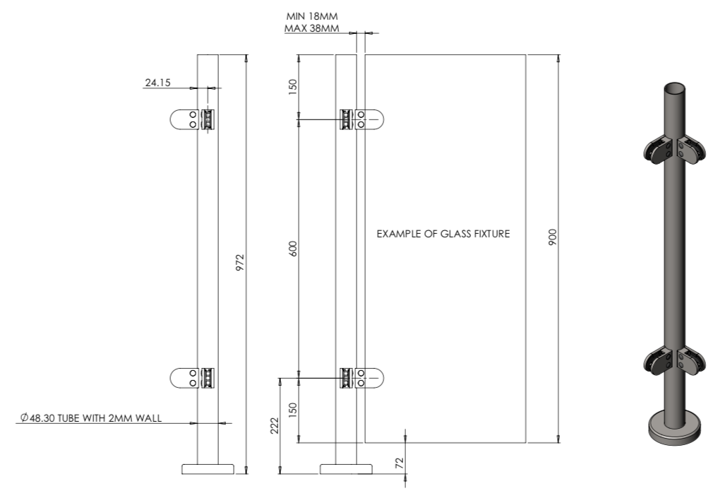 972mm Post when used with a saddle and 48.3mm Handrail will give an overall balustrade height of 1100mm.
