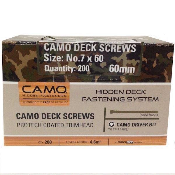SKU: 8125756702799-camo-deck-screws Category: All Tags: Brand_Camo, CAMO Hidden Deck Fasteners, deck frame kits, Fasteners, Length_48mm 1-7/8", Length_60mm 2-3/8", Material_Pro-Tech, Material_Stainless Steel, Pack Quantity_1750, Pack Quantity_200, Pack Quantity_350, Pack Quantity_700, Type_Decking Screws