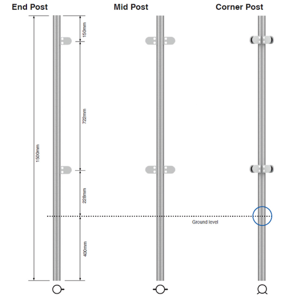 Concrete-in satin finish stainless steel 316 pre-assembled round post. Complete withĀ glass clamps. Top fitting not included.