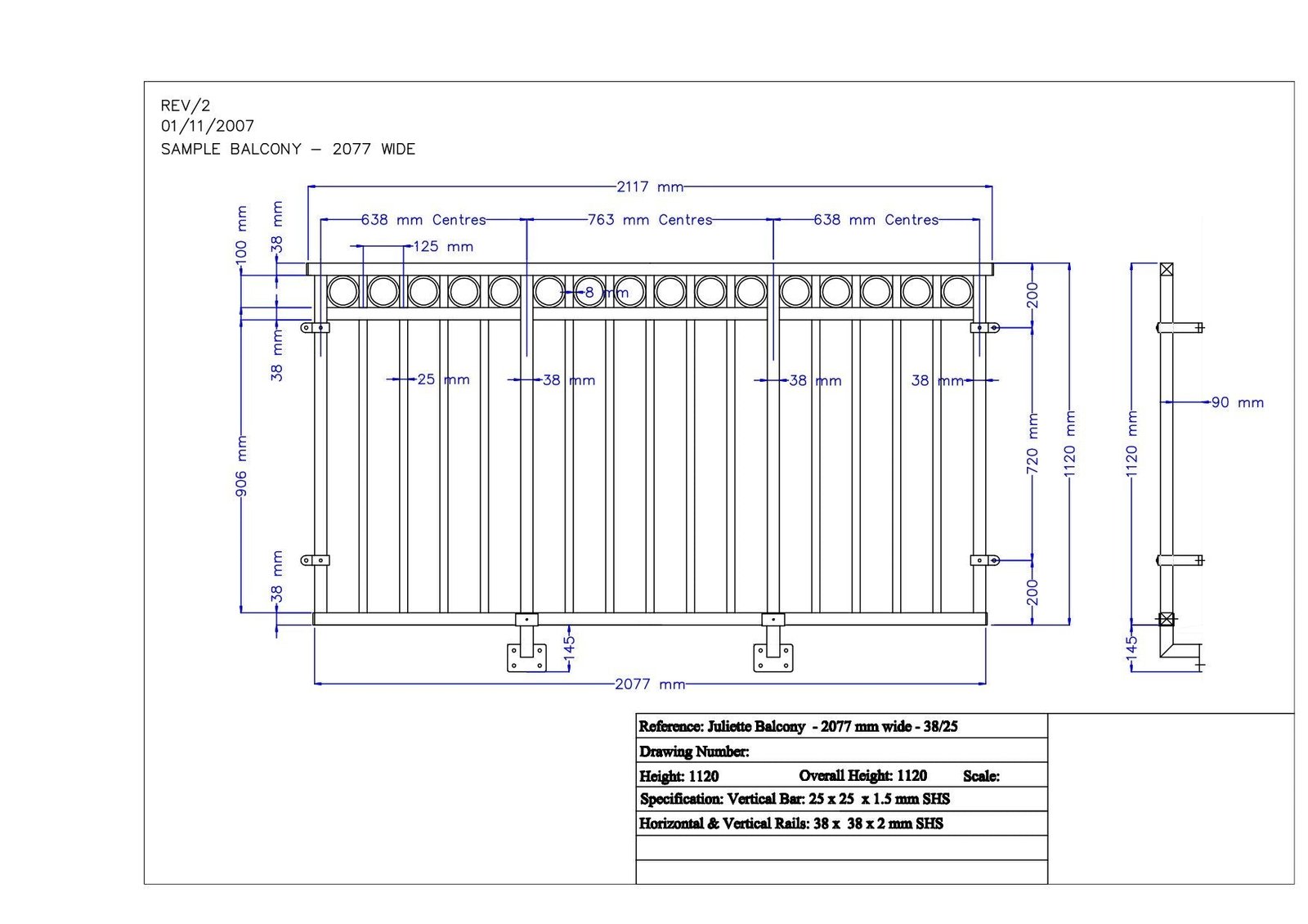 This balcony system has been made from a pre-galvanised zinc then powder coated in long lasting UV resistant Du Pont finish. Our infinity Juliet balcony kits have been designed in a simple solution suitable for the following 3 doorway sizes