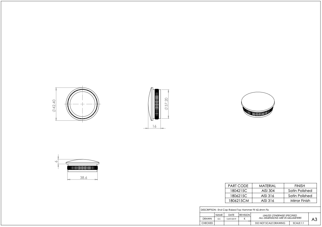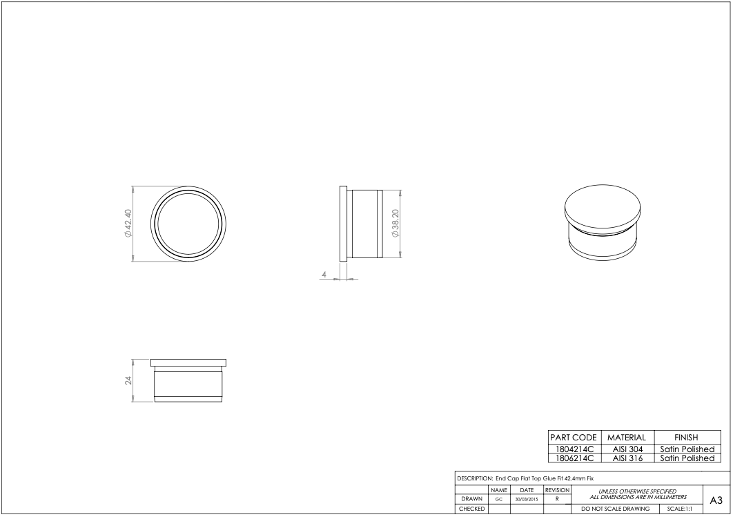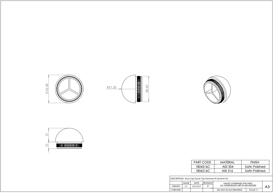 Be the first to review “Handrail or Post End Cap – Choice – 42.4mm – 316l Satin or Mirror Polished” Cancel reply