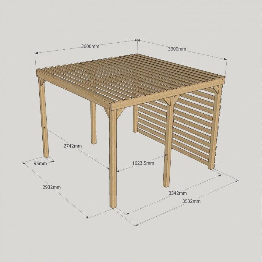 Tanalised, pressure treated heavy duty timber Shade Pergola DIY Kit, manufactured from high quality redwood timber treated to ensure a 10 year warranty for rot. This version is our shade pergola which incorporates a full roof and end panel for growing plants up and over for shade.