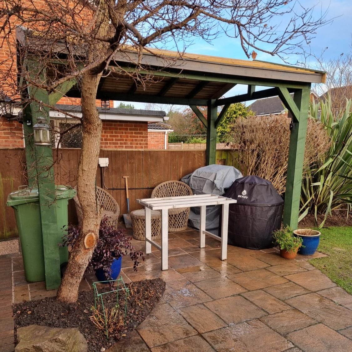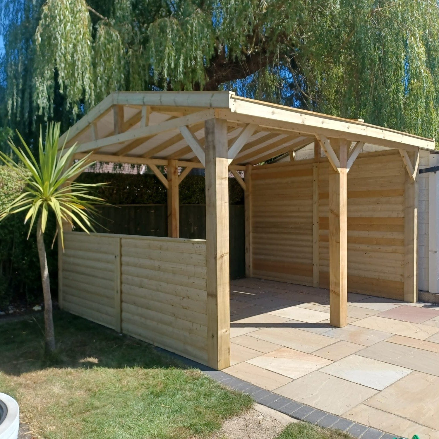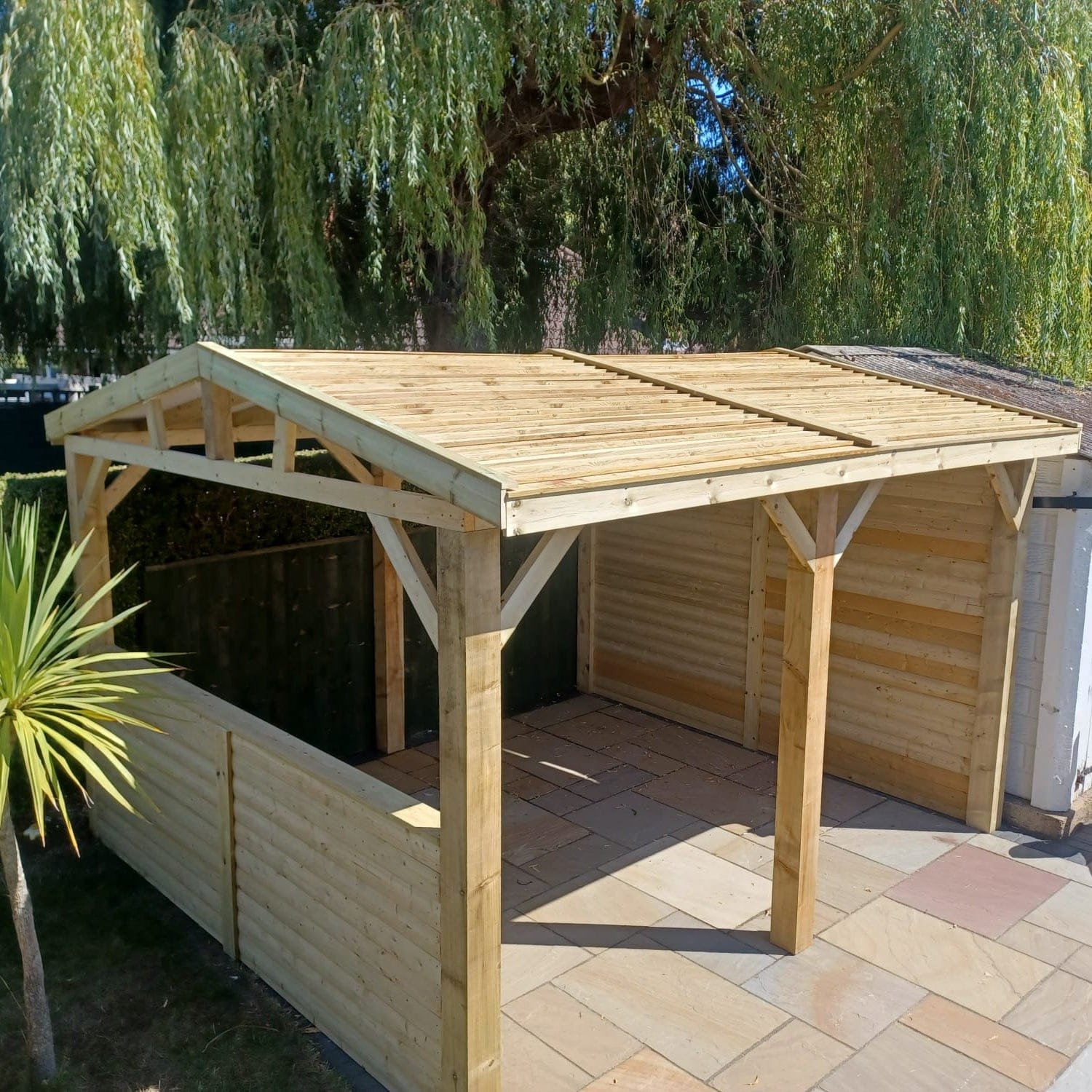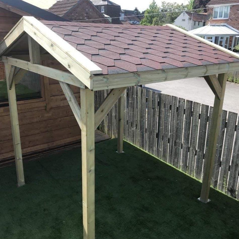 - Roof dims to outside approx 300mm wider than upright posts on the sloped side and approx 80mm wider on the gable end.
