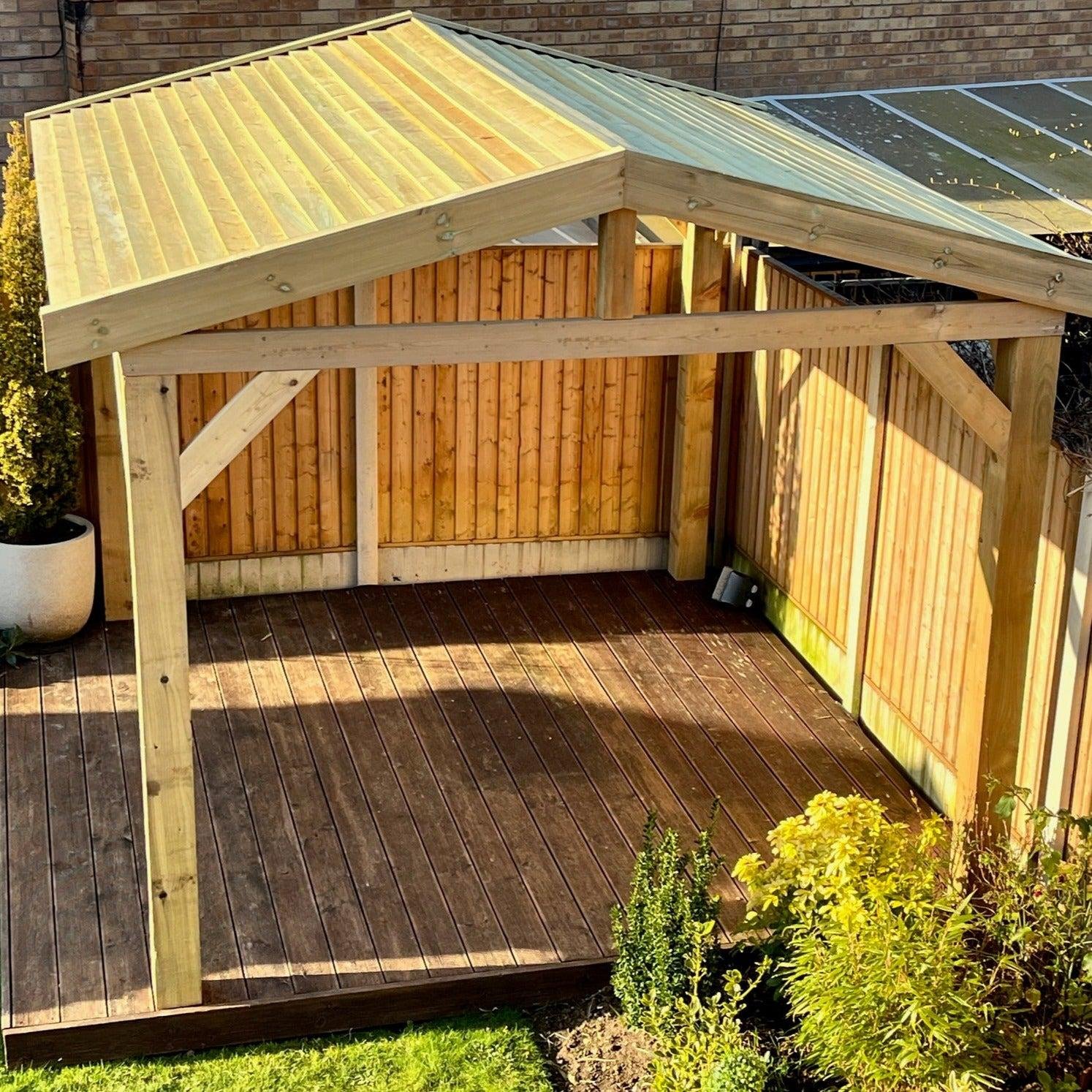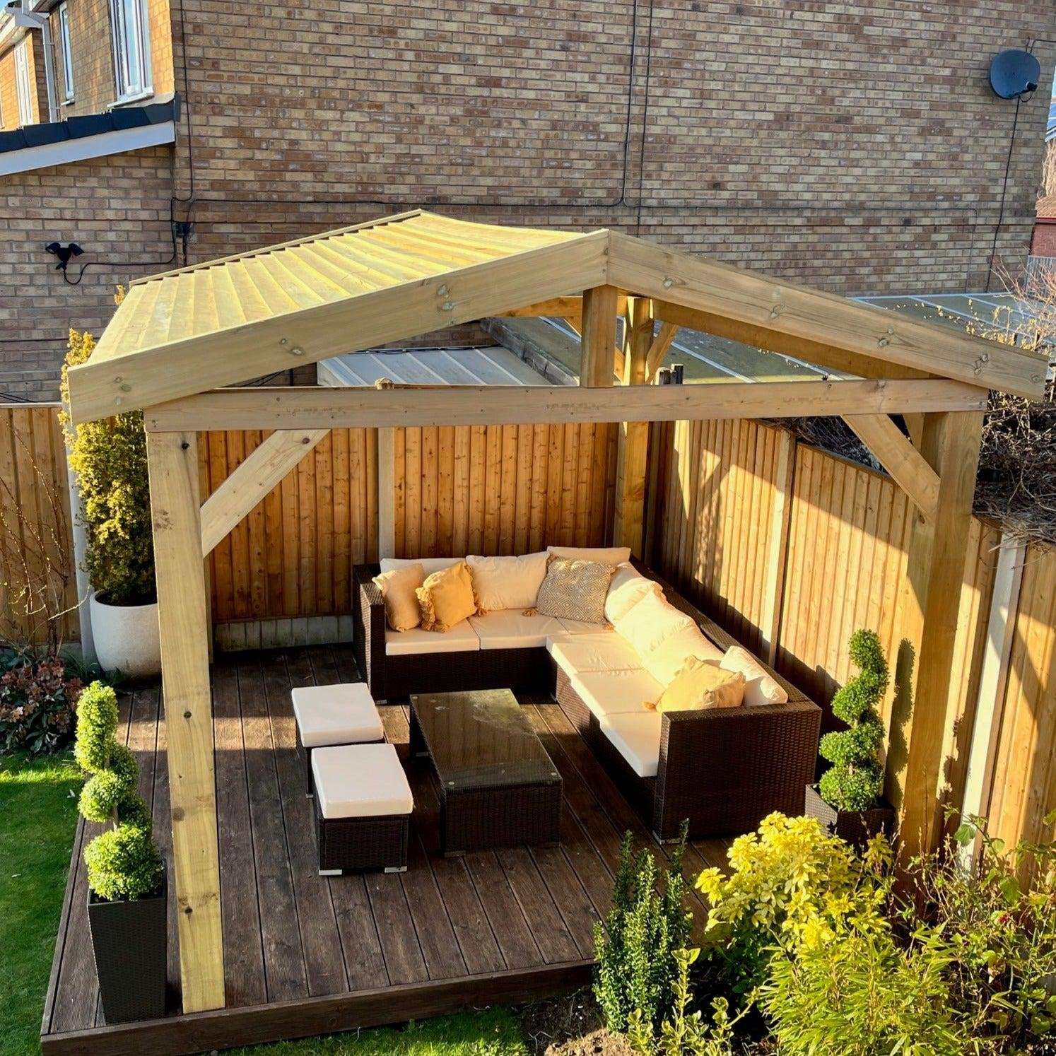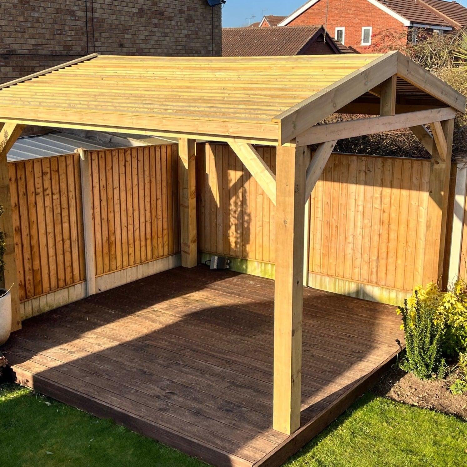 This gazebo kit option includes the full timber frame, fascia’s and timber roof, a very high quality gazebo.
