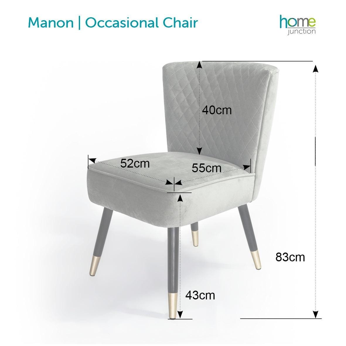 The Manon chair is an attractive and elegant occasional chair. It has a stylish quilted back and a black wood leg with an accented gold band. This chair will look amazing in any living room, unused nook, entrance hall or bedroom.