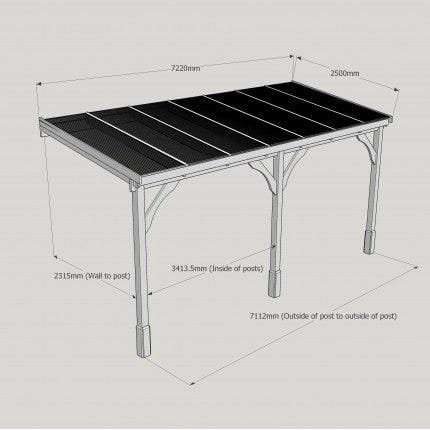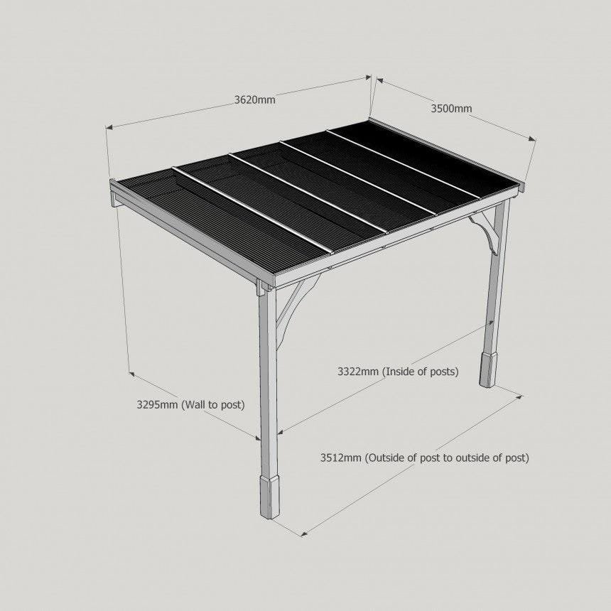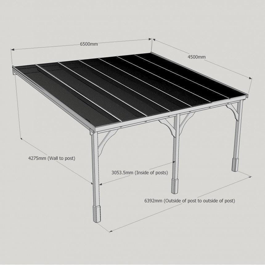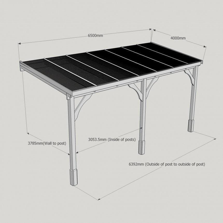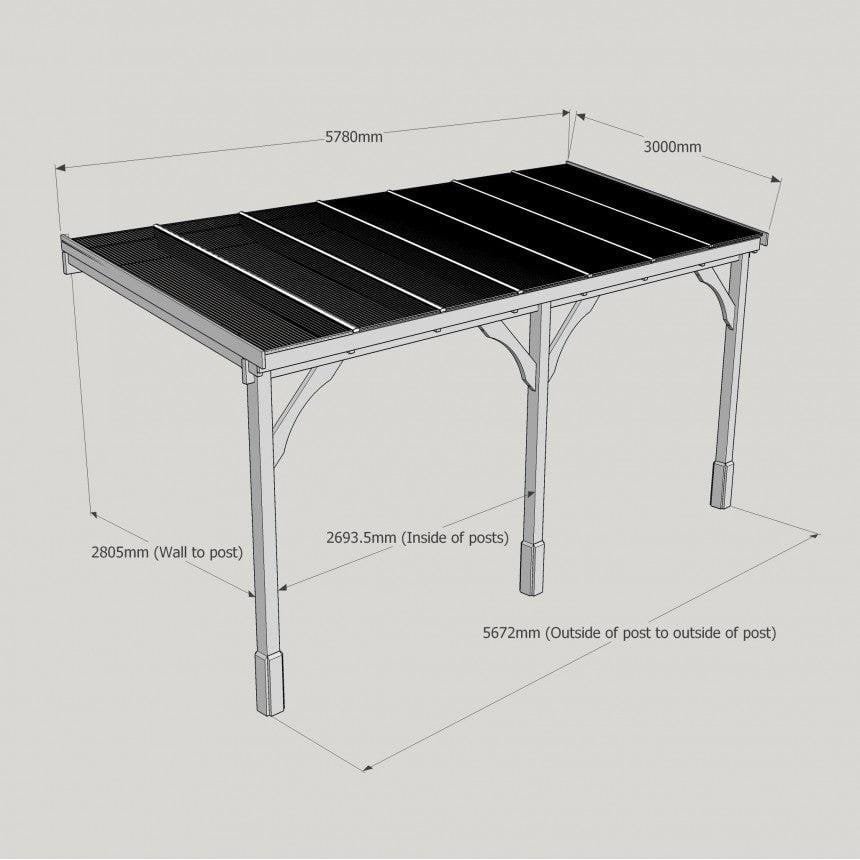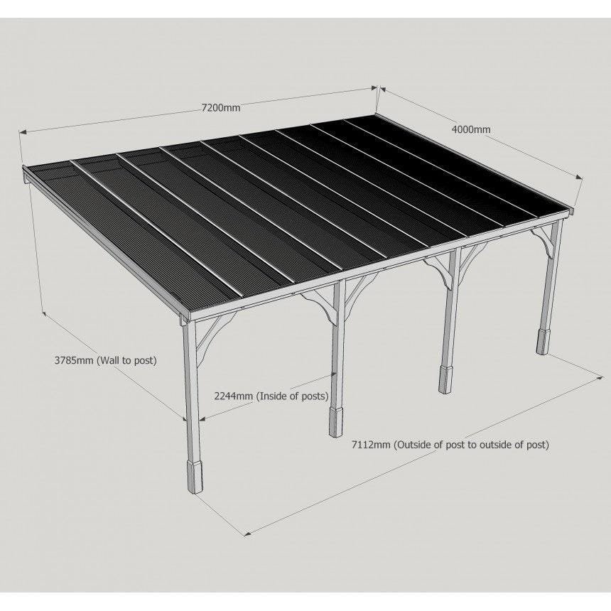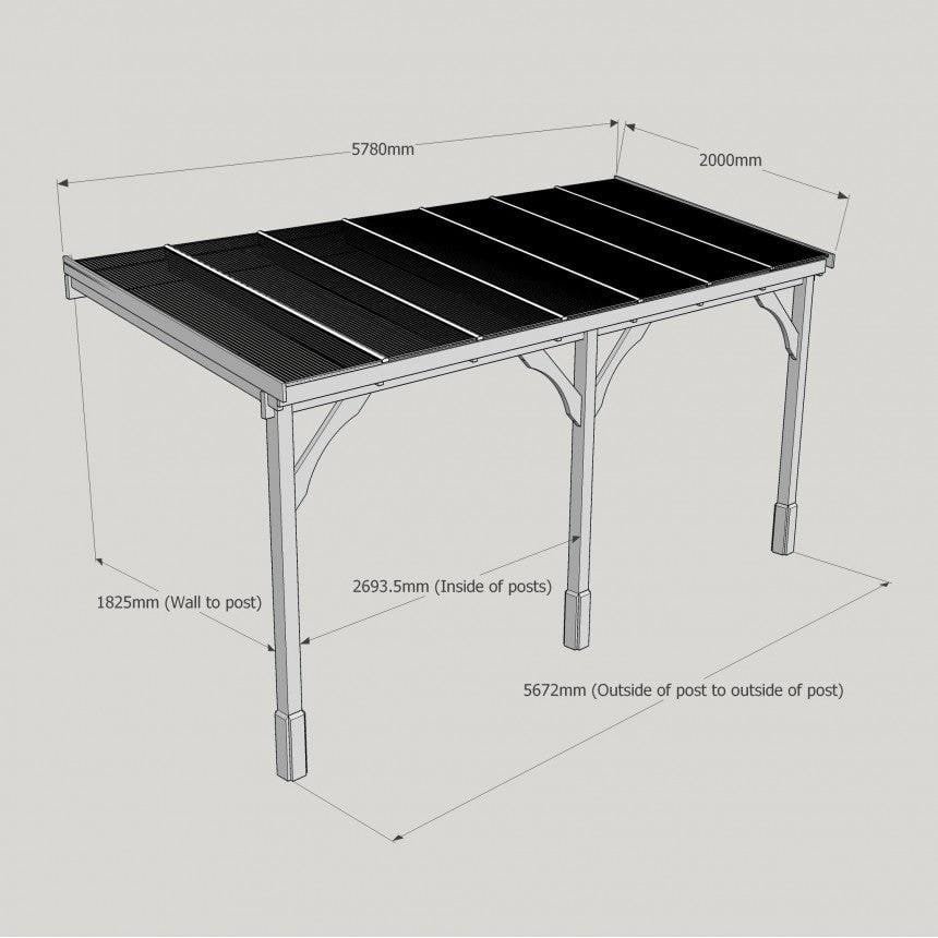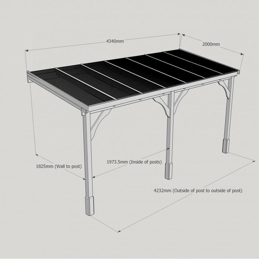 Tanalised, pressure treated heavy duty timber Lean-To Carport Gazebo Kit with full polycarbonate roof, manufactured from high quality redwood timber treated to ensure a 10 year warranty for rot.