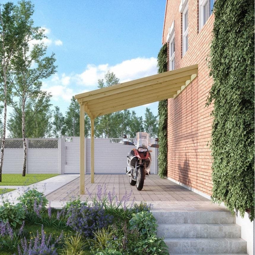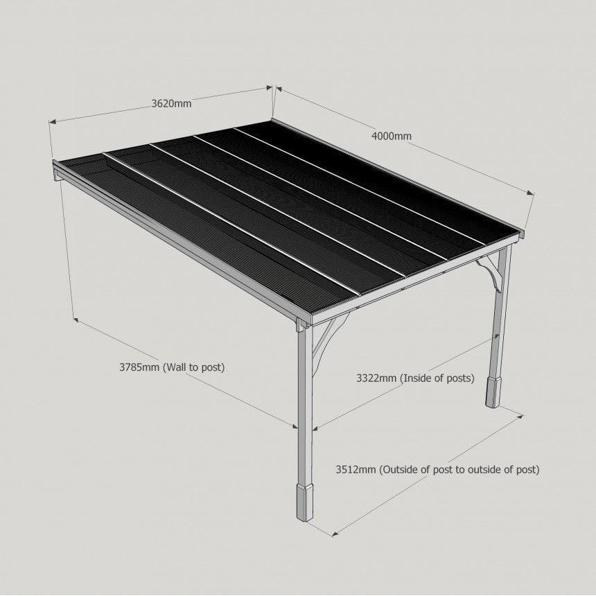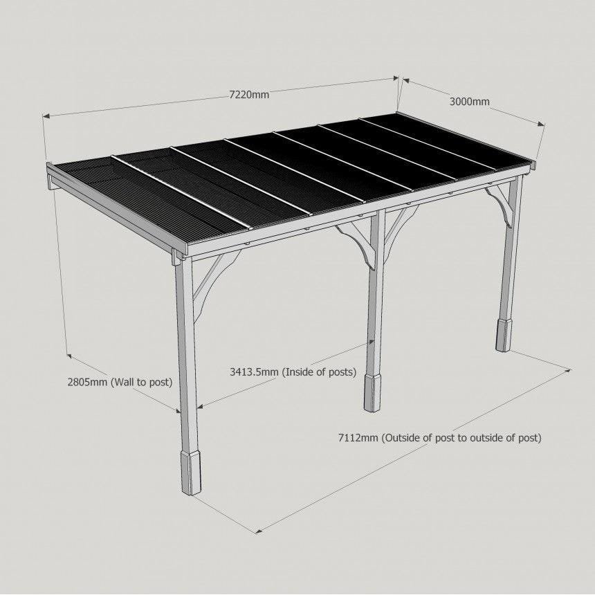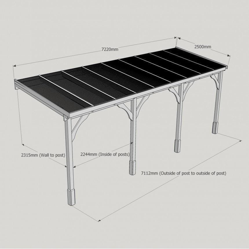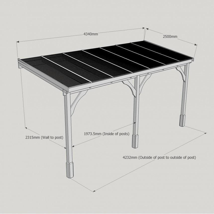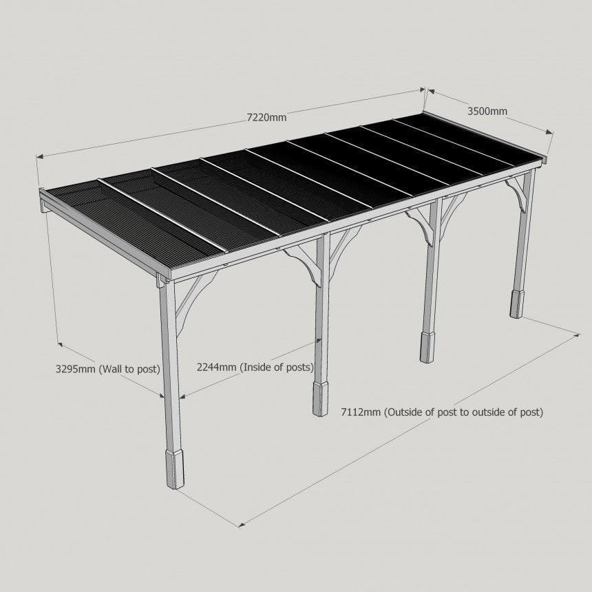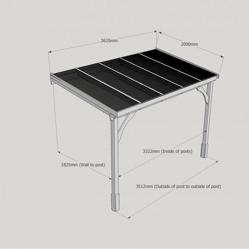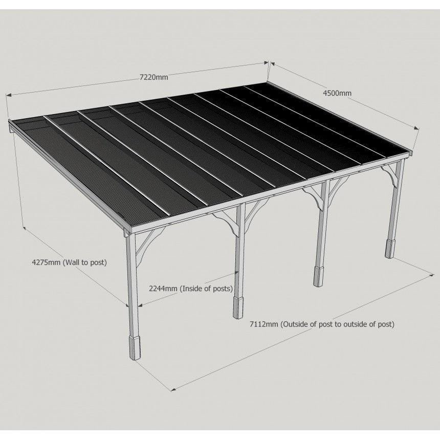 Tanalised, pressure treated heavy duty timber Lean-To Carport Gazebo Kit with full polycarbonate roof, manufactured from high quality redwood timber treated to ensure a 10 year warranty for rot.