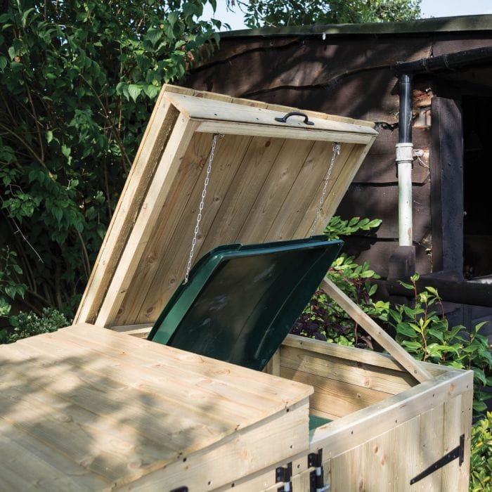 Tanalised timber double bin store for those who want to keep their bins hidden and under a durable, high quality and good-looking store. Pressure-treated to ensure long-lasting protection against the elements.