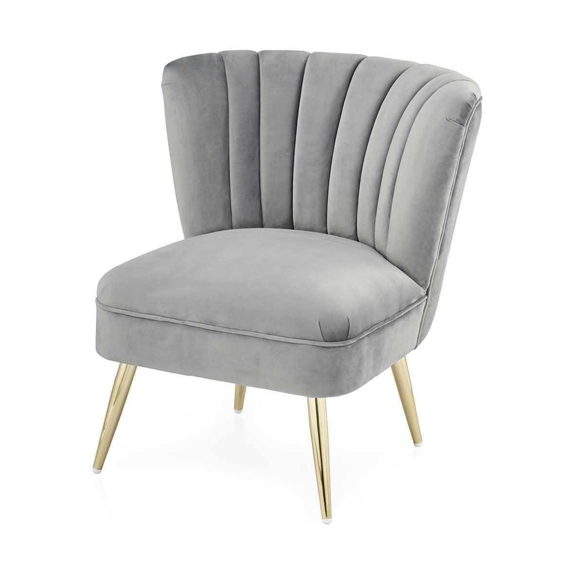 Elegant Velvet Cocktail Chair from Home Junction, upholstered in plush velvet with gold-plated legs this is a masterpiece in furniture excellence and quality.