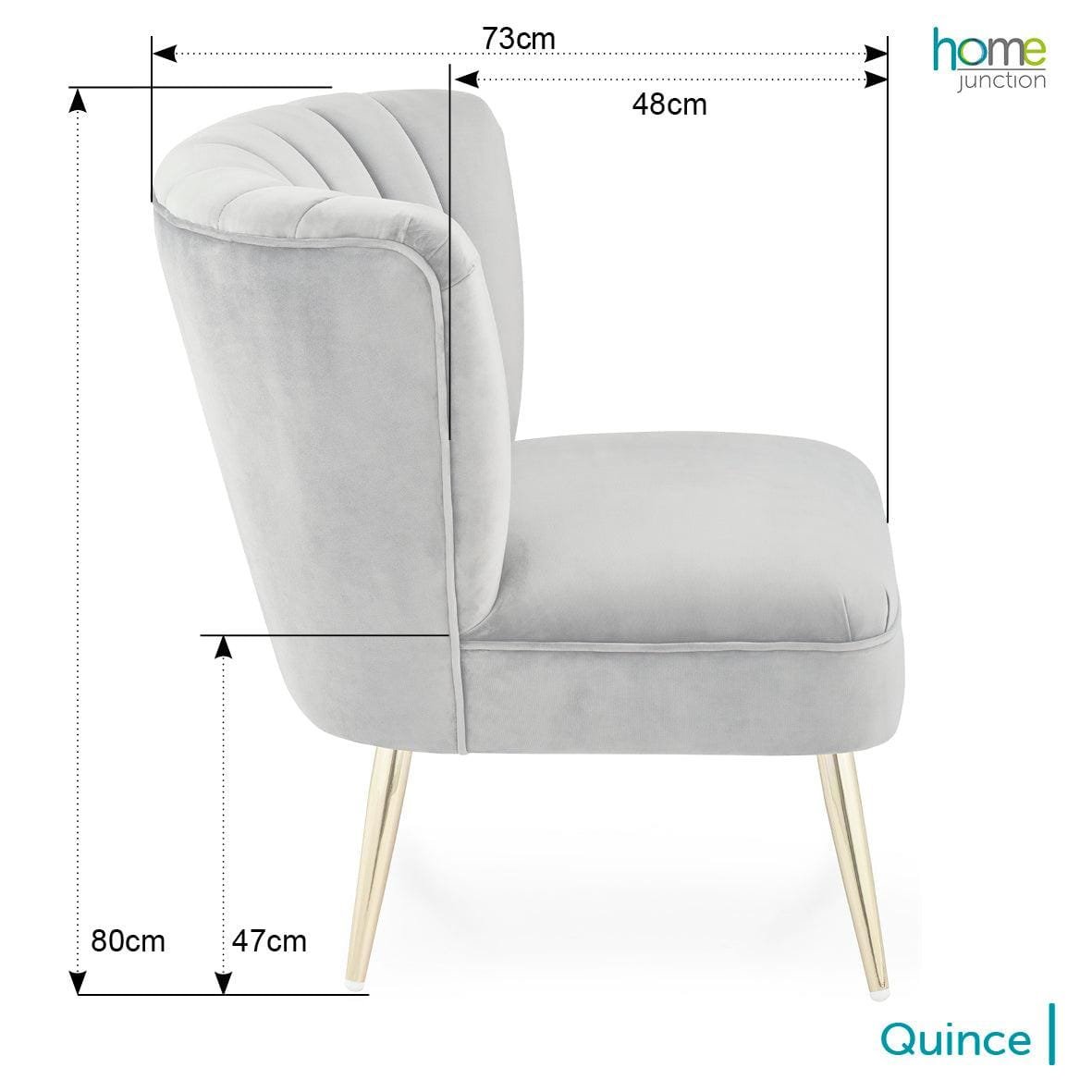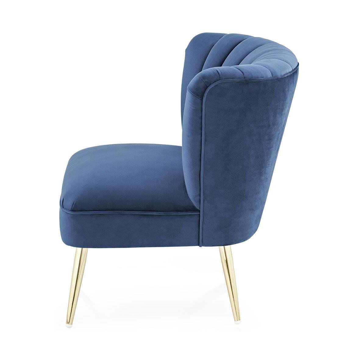 Elegant Velvet Cocktail Chair from Home Junction, upholstered in plush velvet with gold-plated legs this is a masterpiece in furniture excellence and quality.