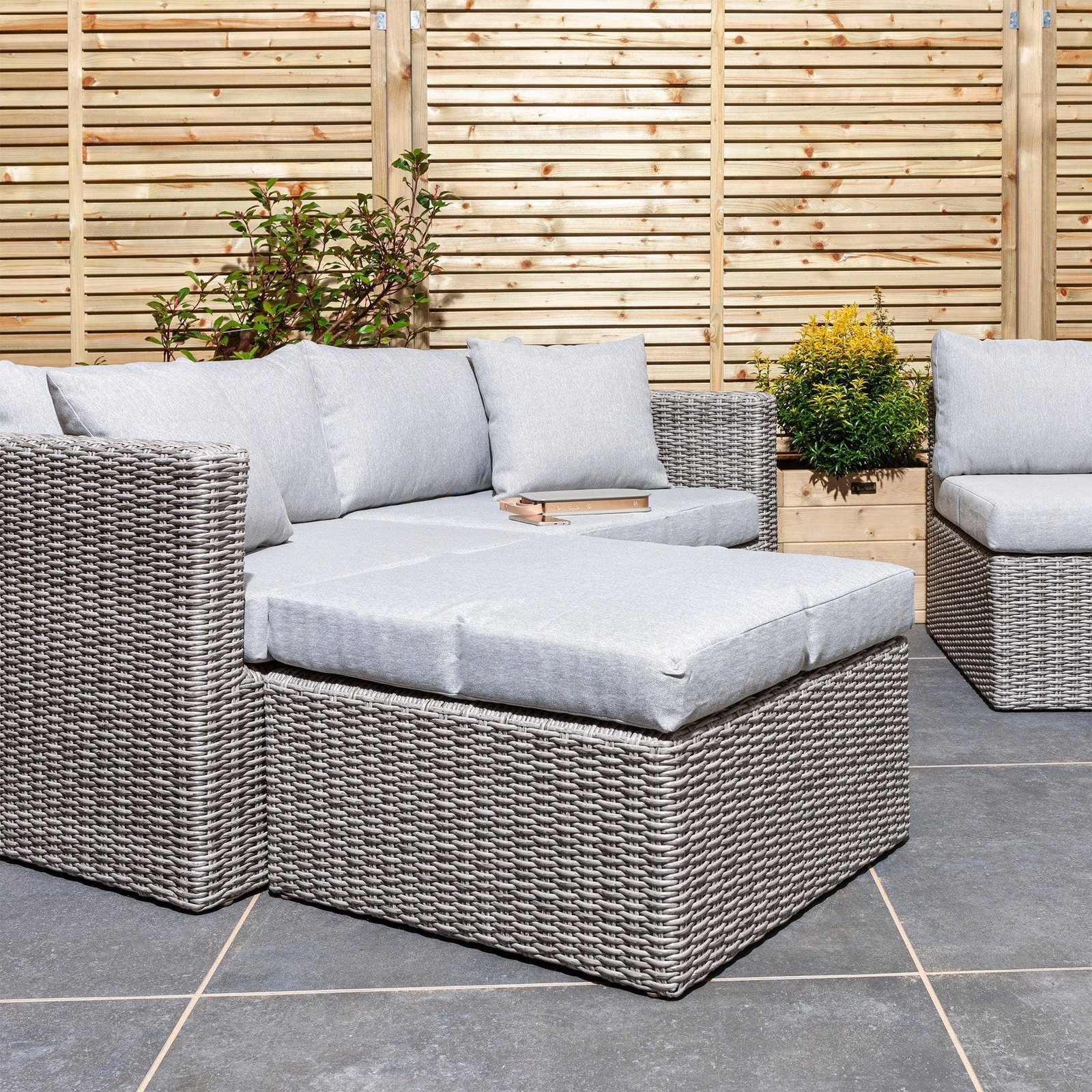 This incredible, versatile multifunction sofa set has fifteen different configurations, with an aluminium frame and 8mm flat weave wicker this is incredible value for money.