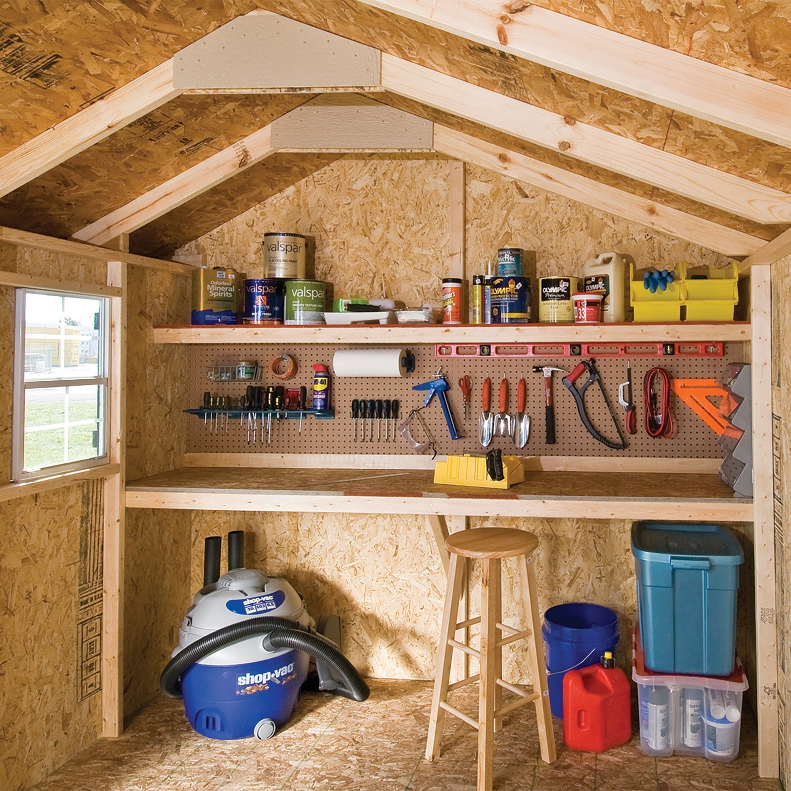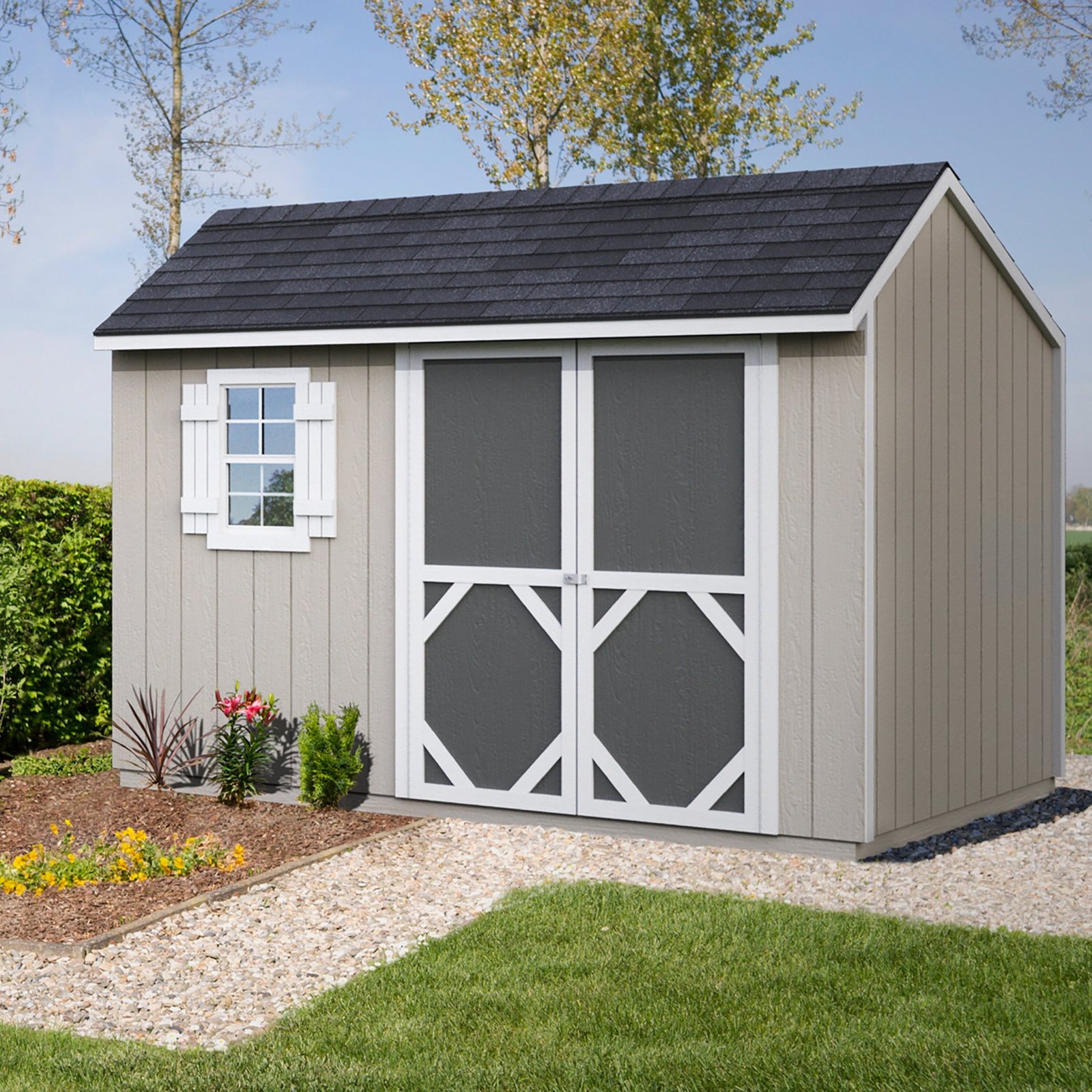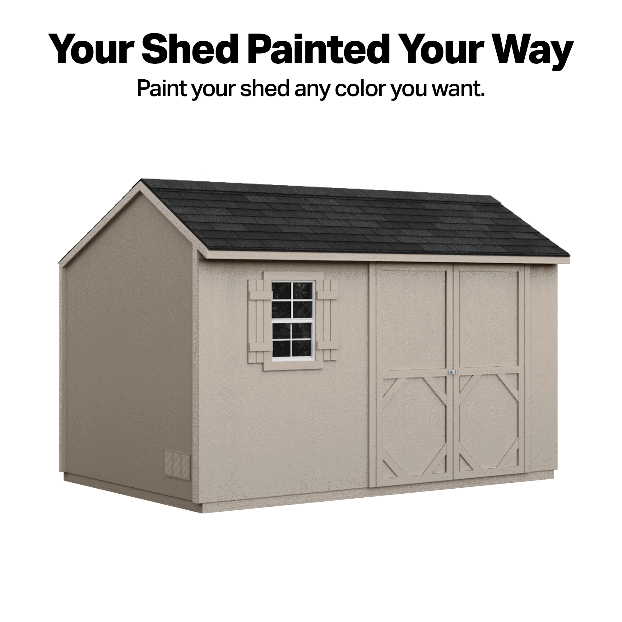 The Seville Shed combines functionality with charming cottage-style design. At 12′ x 8′ (96 sq. ft.), it offers ample storage space for tools, equipment, and more. The 64-inch wide double doors provide easy access, while the operable window with shutters and screens lets in natural light and fresh air. Organize your items effortlessly with two storage shelves, a workbench, and a pegboard. Build it yourself to save or choose professional installation for a hassle-free setup.