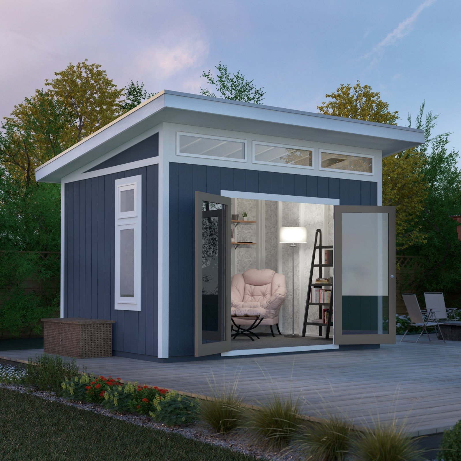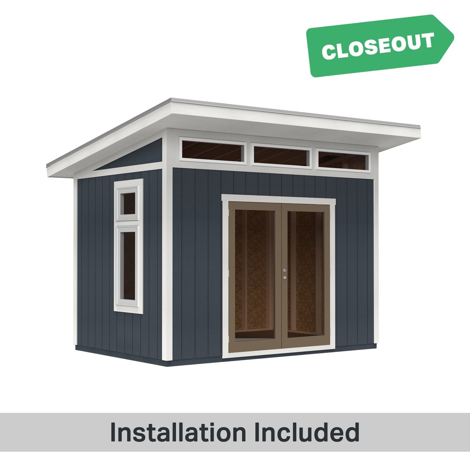 The Sullivan Shed blends modern style with superior durability. It features a heavy-duty treated floor for added strength and a Galvalume roof system for long-lasting protection. The treated LP® siding resists rot and termites, ensuring years of low-maintenance use. The 72-inch wide residential-grade French doors, paired with an integrated over-door redwood pergola, create a sophisticated entry. Three transom windows and an operable double-pane window fill the space with natural light and fresh air, making it perfect for storage or a creative workspace. Build it yourself to save or choose professional installation for a hassle-free setup.