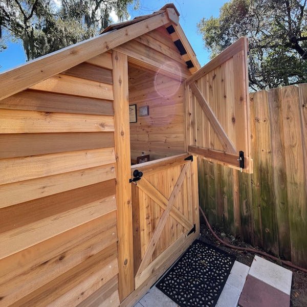 The Cedarshed Sunhouse makes an ideal backyard studio, outdoor workshop or garden greenhouse and shed combination. The angle wall windows are made of a high performance thermoplastic that transmit up to 90% of visible light, while filtering out harmful ultraviolet light. This is what makes it a great hobby greenhouse kit for growing and nurturing your plants. Free Shipping and Always in Stock!