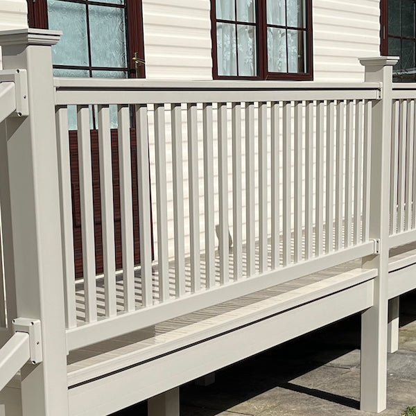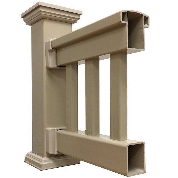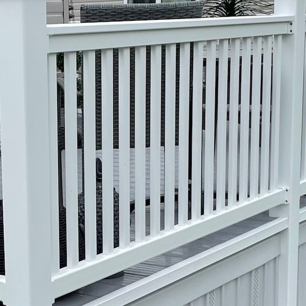 All SuperRail balustrades are made from a natural recycled base material with a co-extruded virgin vinyl PVC outer skin which are compounded with high levels of titanium dioxide pigment to ensure outstanding UV resistance and impact modifiers for long-term durability and structural integrity.