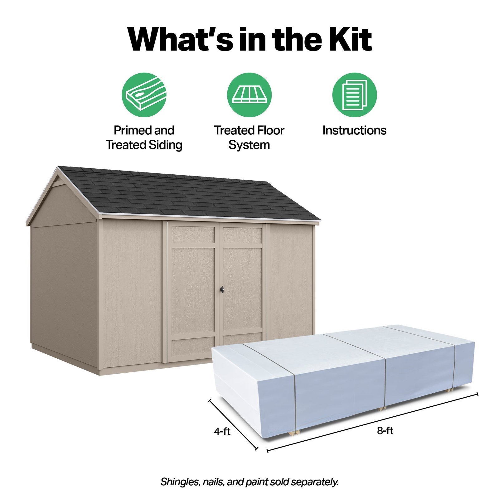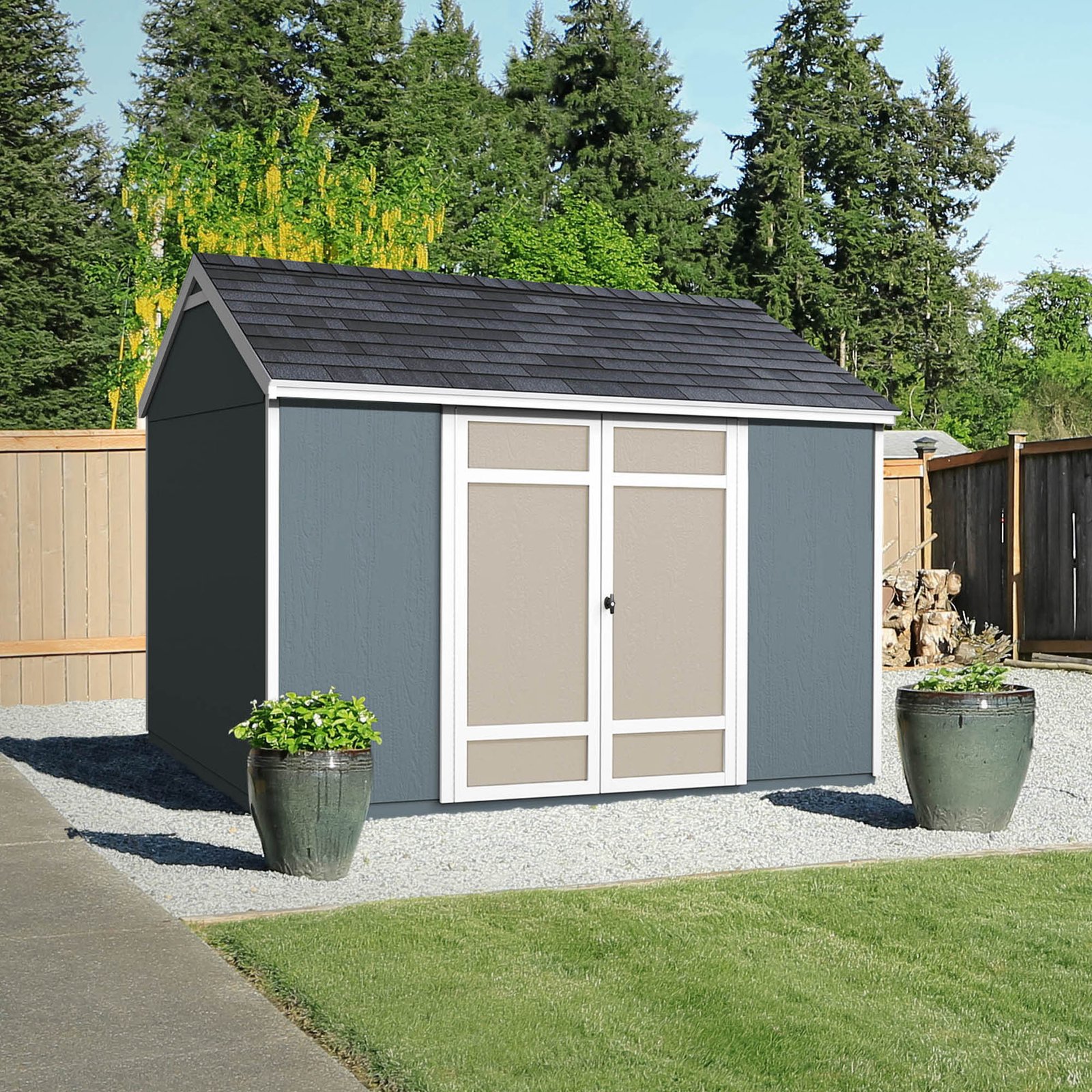 The Sydney Shed offers simple yet durable multi-purpose storage, perfect for keeping your tools, equipment, and outdoor essentials organized. Its 6-foot sidewall height easily accommodates long-handled tools, while the 64-inch wide double doors provide easy access to larger items. A locking T-handle ensures your valuables stay secure. Available in two different sizes to fit your storage needs. Build it yourself to save or choose professional installation for a hassle-free setup.