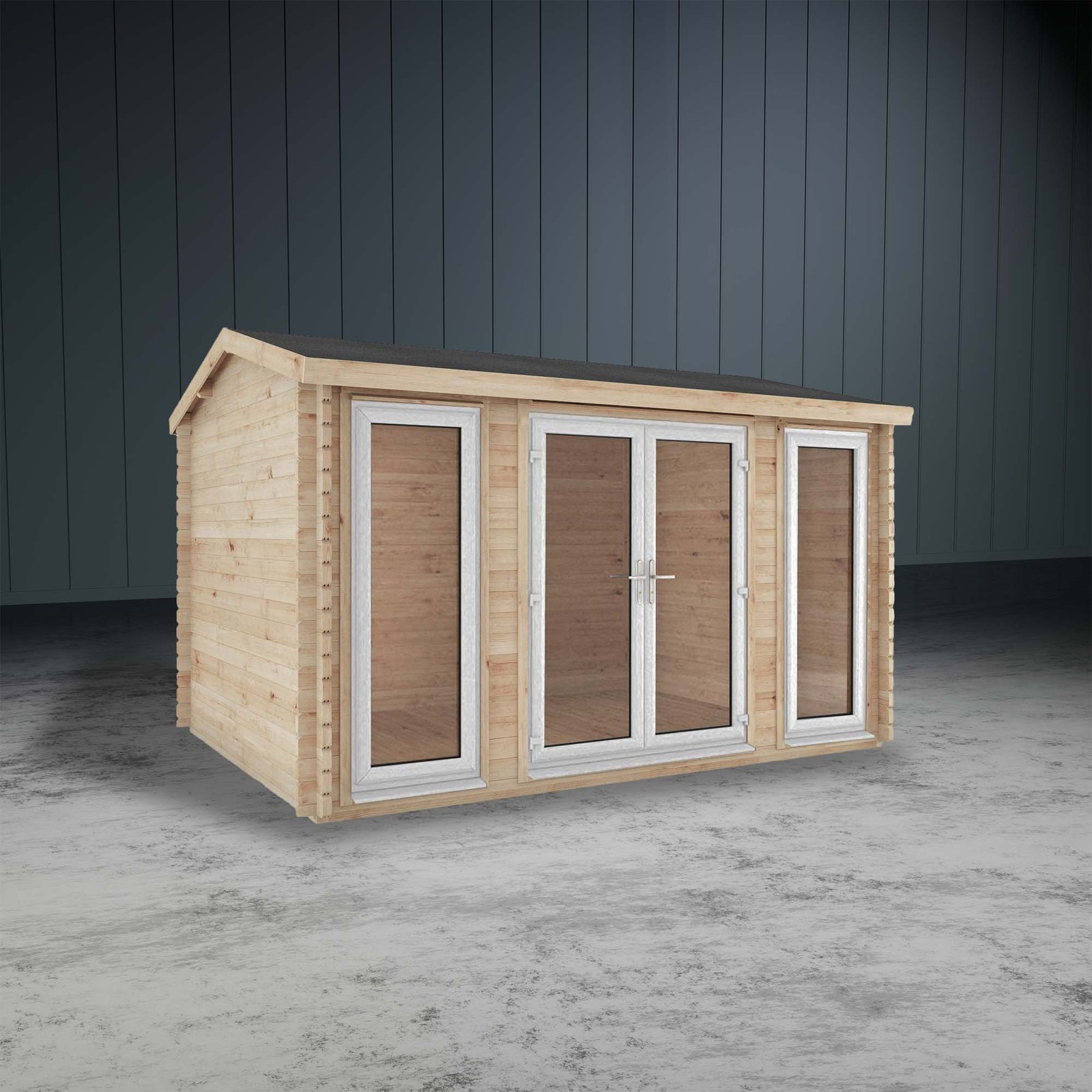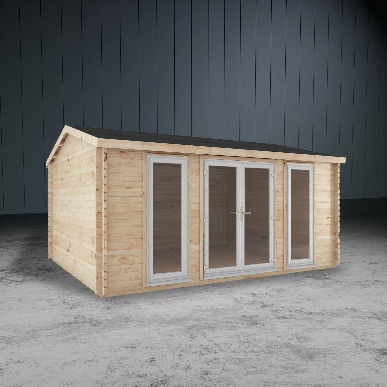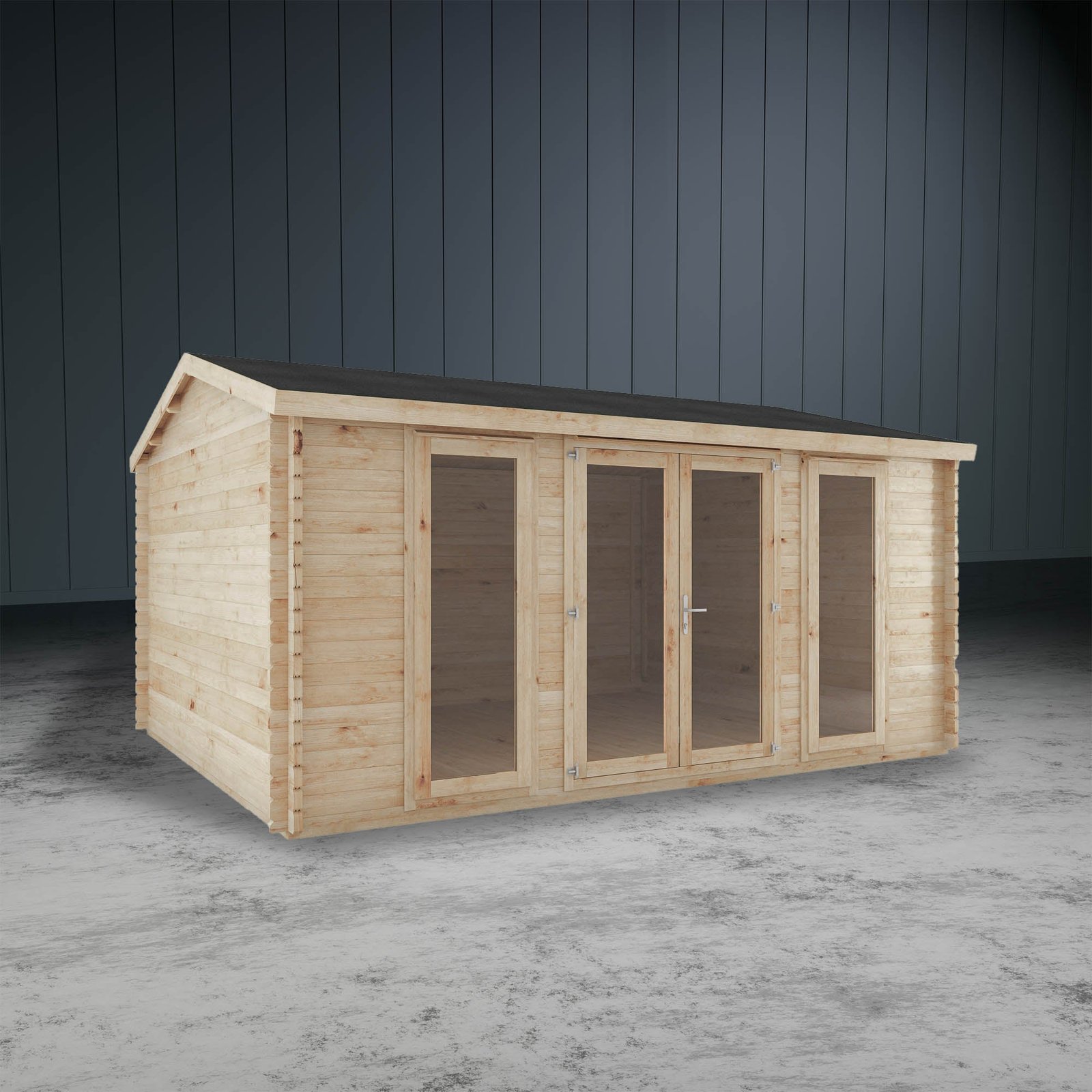 The Dove Log Cabin offers a traditional and stylish building that would look great in any garden. Whether you’re looking to create a home office, additional living space or a hobby room, this log cabin could be just what you’re looking for. With an impressive 2 large windows and a wide opening set of double doors, this building floods with natural light to create a welcoming and airy interior. Featuring a high apex roof-line, you’ll find there is plenty of headroom inside, ideal if you wish to install ceiling lighting and tall storage.