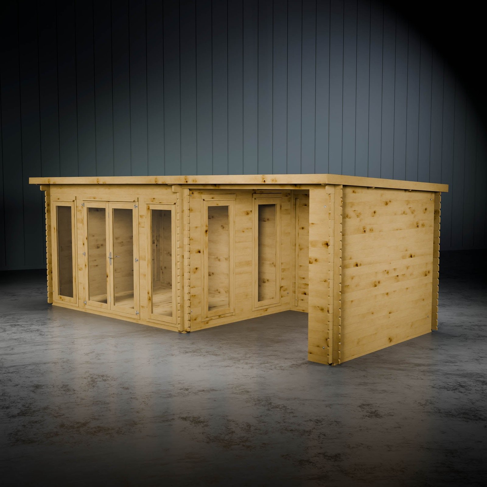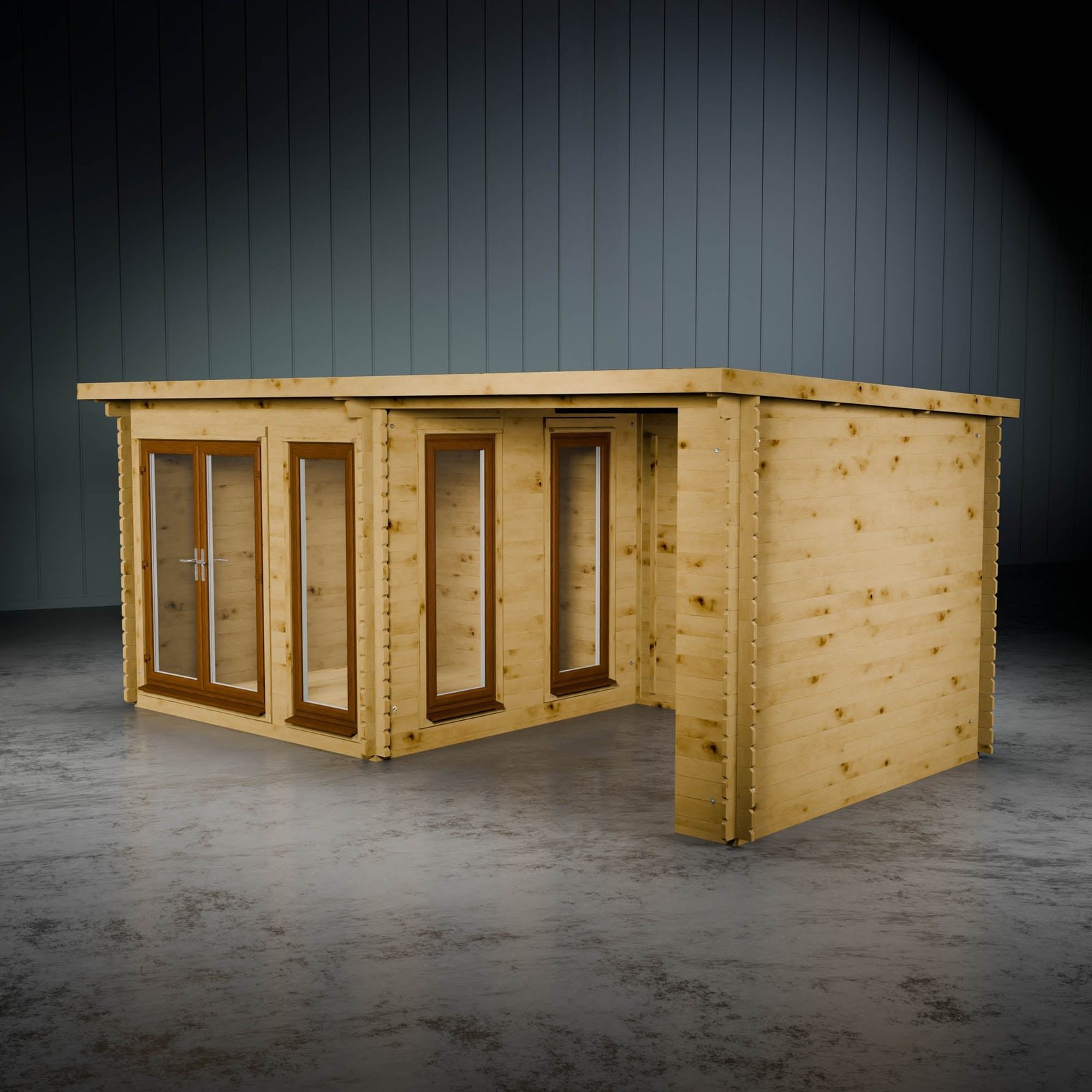 By incorporating a patio area, you can enjoy the outdoors while staying sheltered. Perfect for relaxation, it can transform into a cosy outdoor space, a hot tub hideaway, or a shaded area for children to play away from the sun. Please note, you can place the patio on either side of the building to fit your preferences. The log board thickness for the patio area is 28mm.