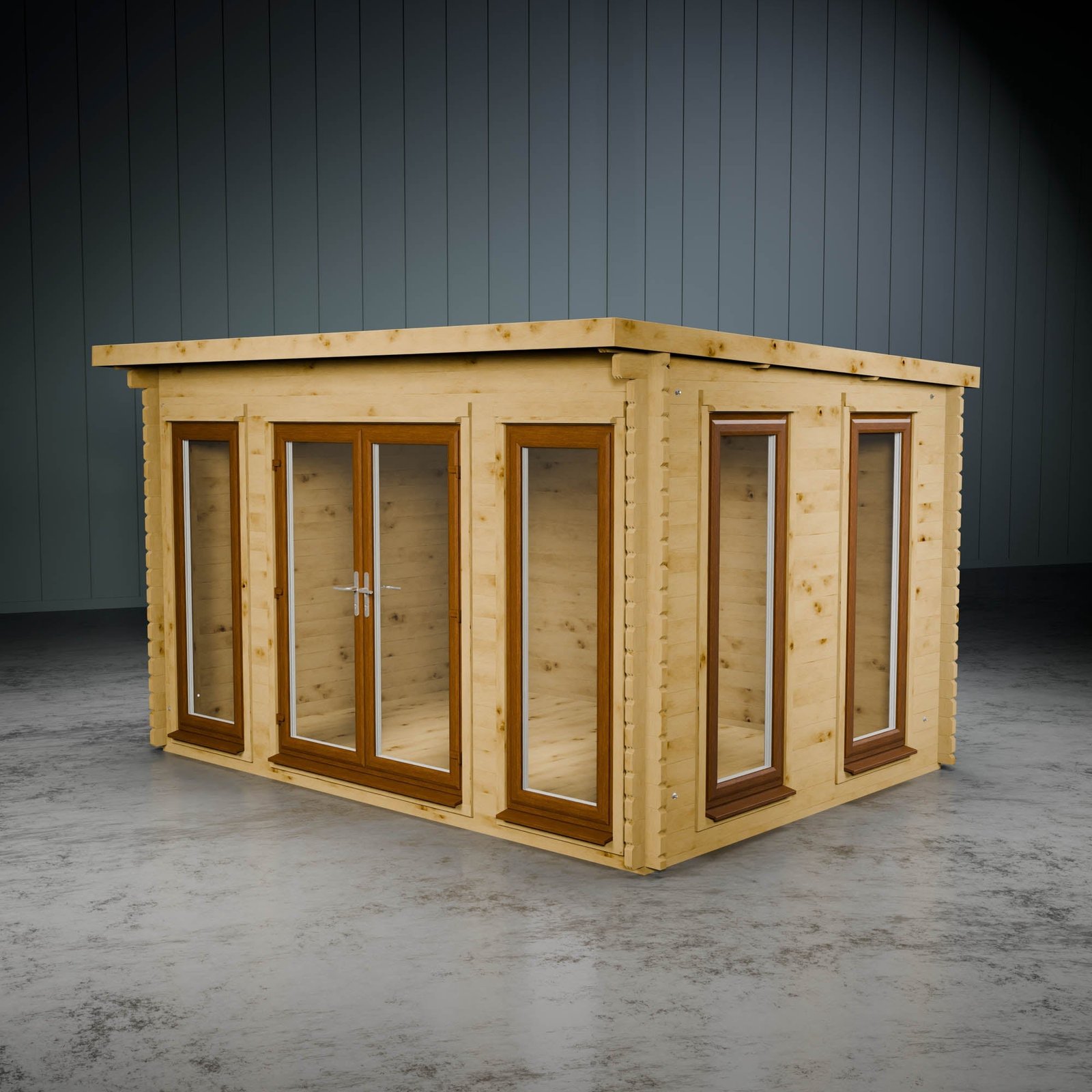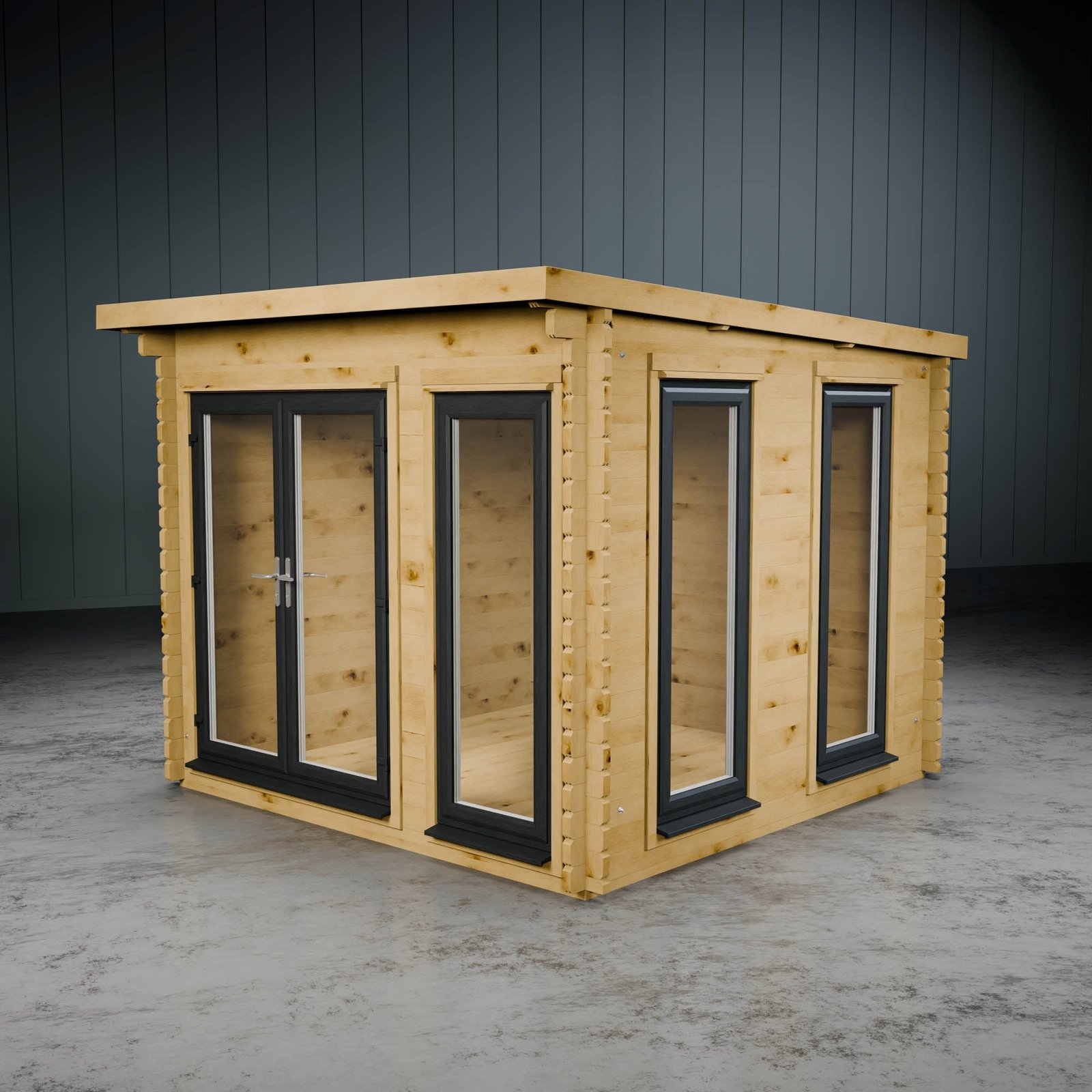 If you fancy upgrading this cabin and taking it to the next level, the Wren log cabin is also available with UPVC doors and windows. Choose from anthracite, oak and white.