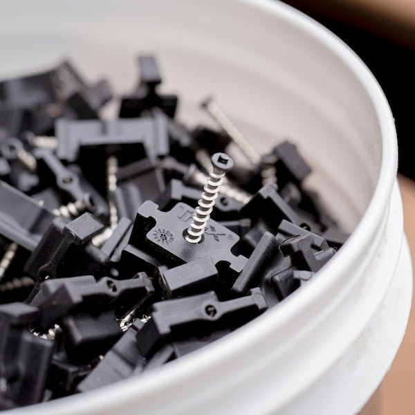 - 900 – BUCKET Trex universal clip for a grooved deck board. Bucket 900 clips approximately covering 45m2