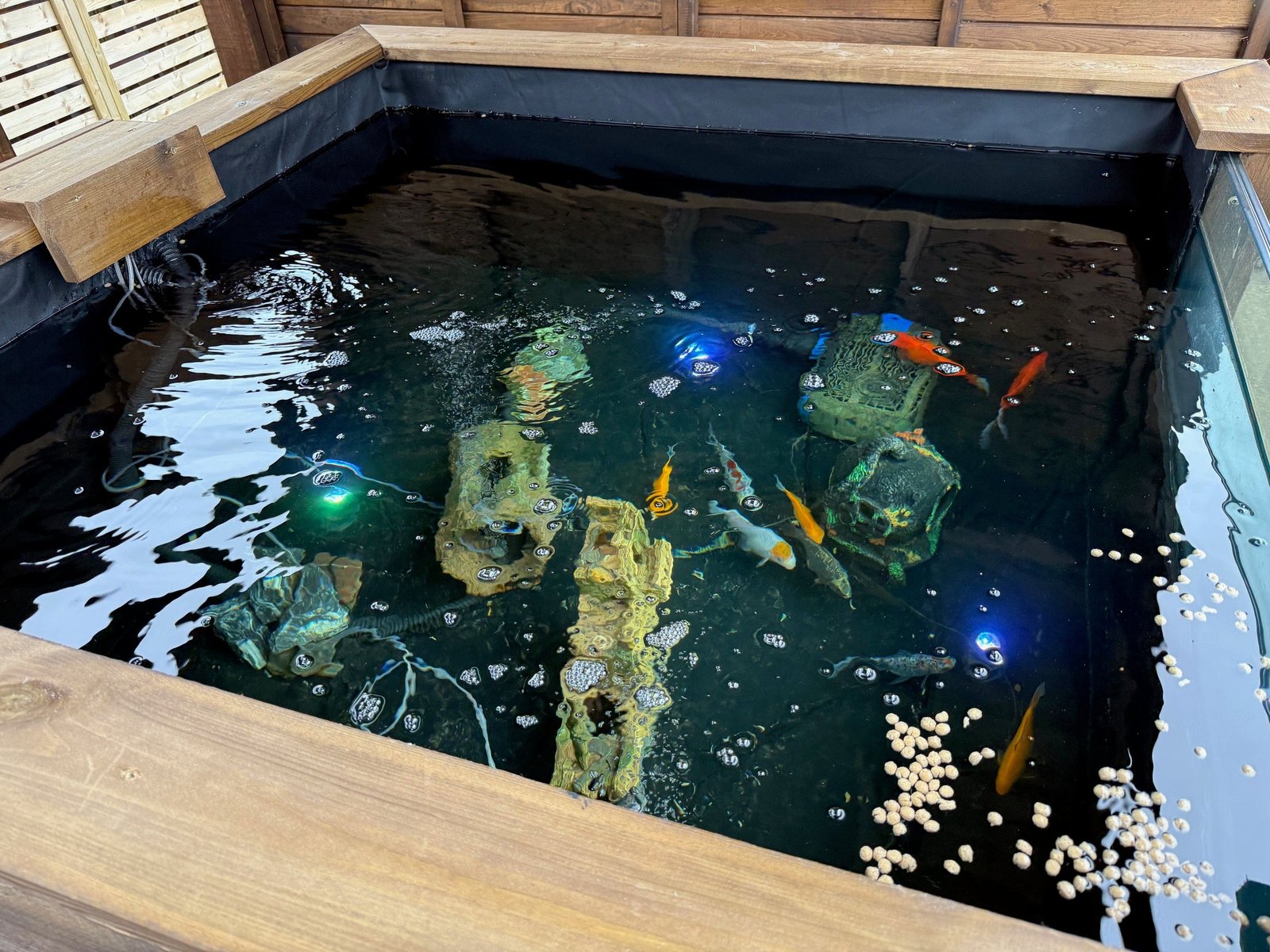 10ft, (3.04m) 897 Gallon, Raised, Stand-alone Wooden Koi Pond, 27mm thick, 697mm high, 4078 litres. These beautifully crafted ponds are
